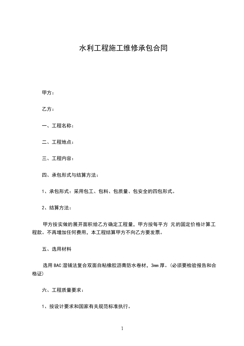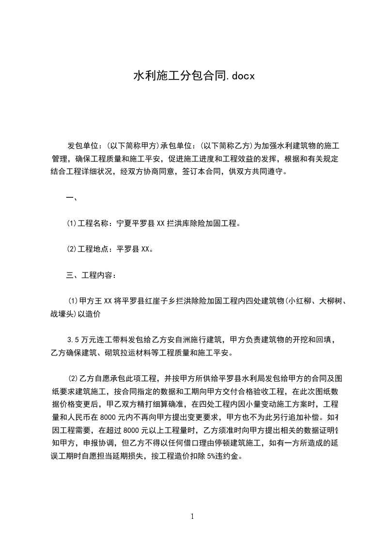 第一条 承包工程概况(包括工程名称、地点、内容、承包的范围、开工和竣工日期、质量等级等内容)