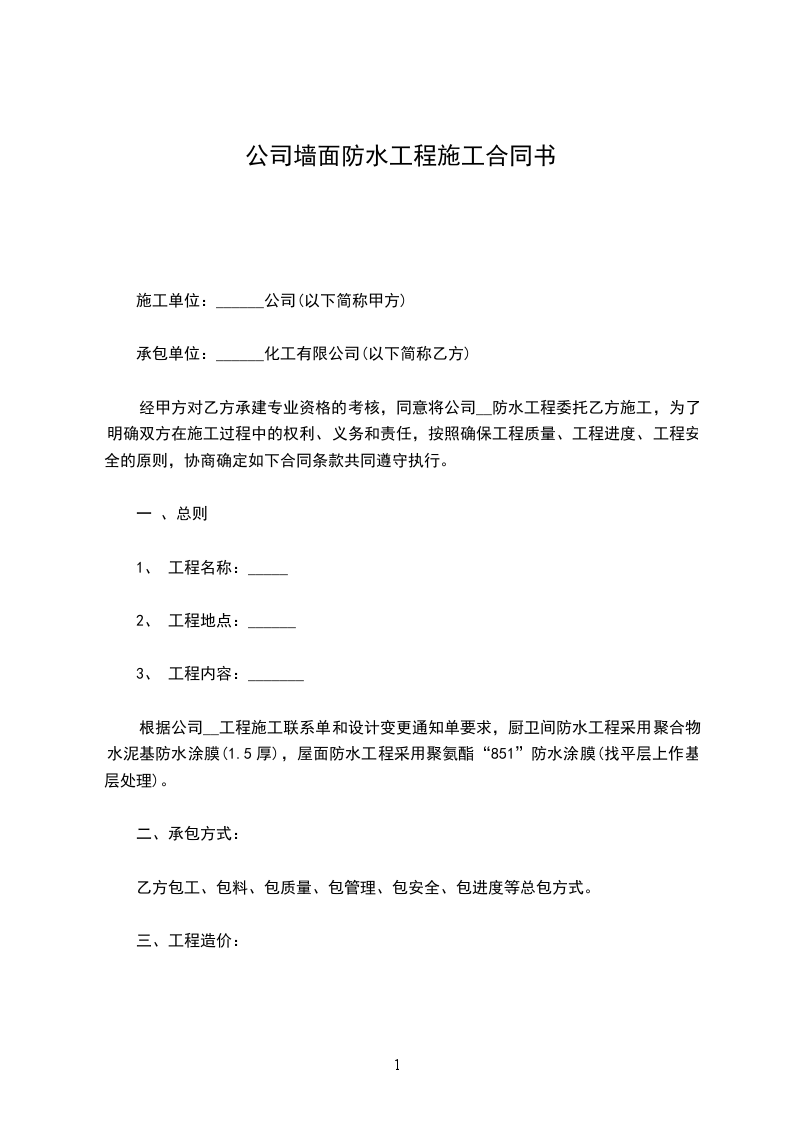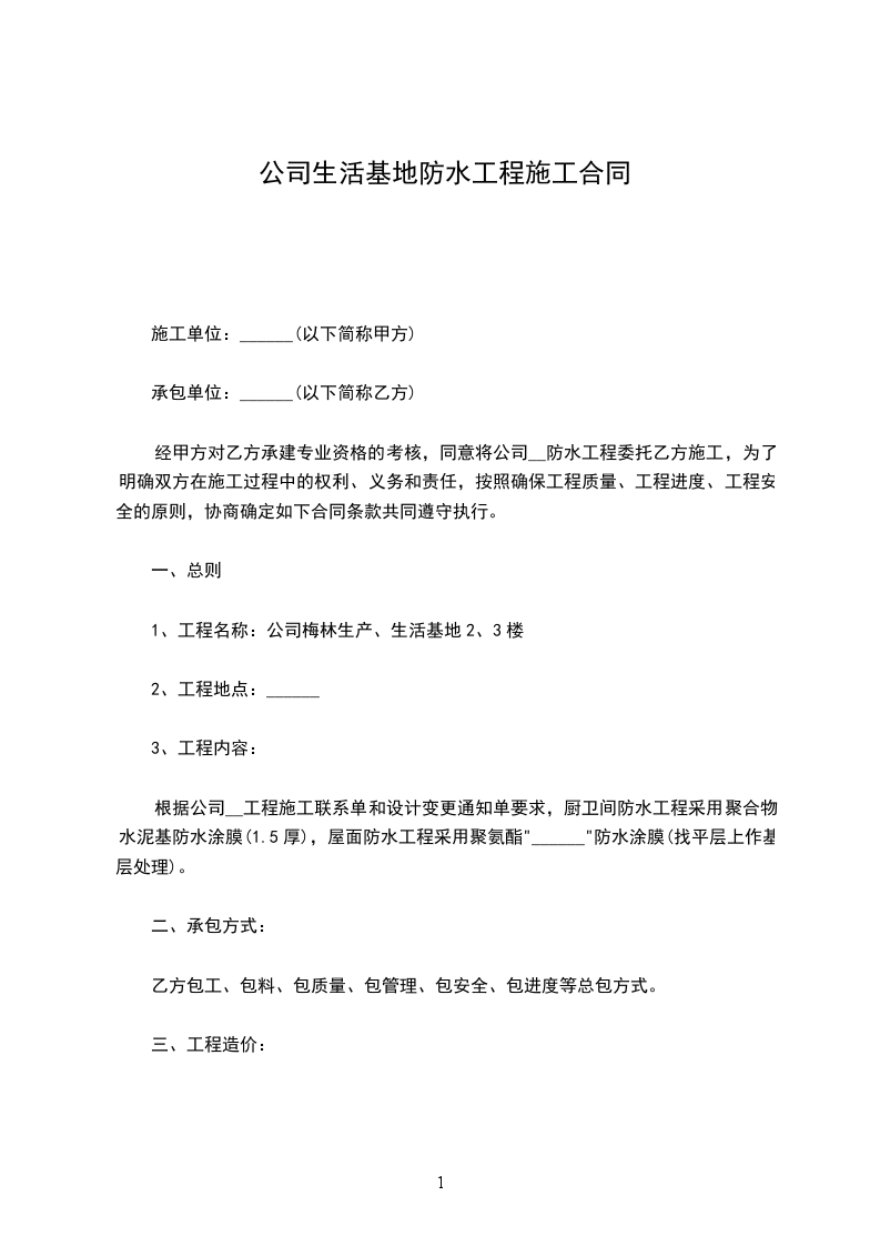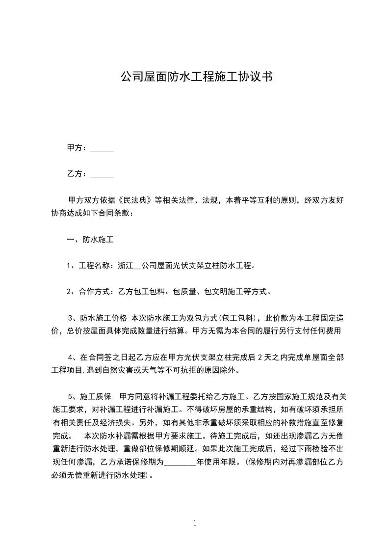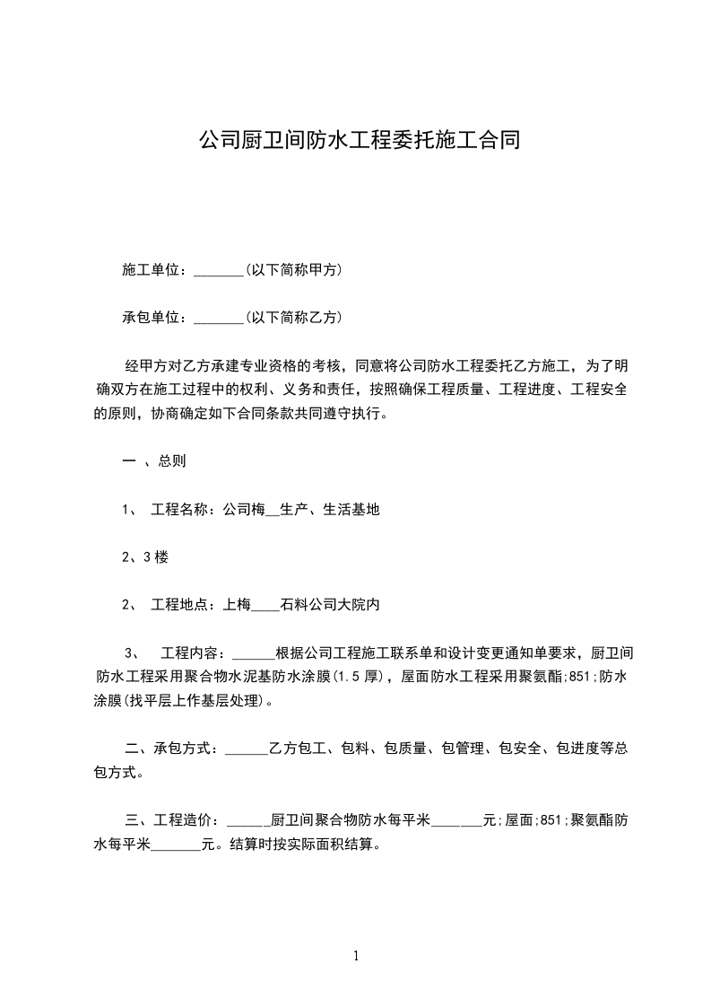 经甲方对乙方承建专业资格的考核,同意将公司____________防水工程委托乙方施工,为了明确双方在施工过程中的权利、义务和责任,按照确保工程质量、工程进度、工程安全的原则,协商确定如下合同条款共同遵守执行。
