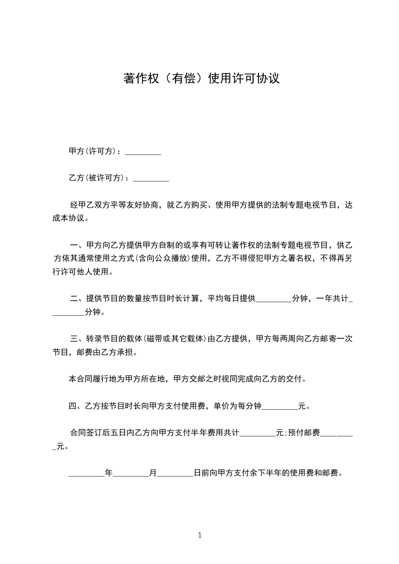 1、甲方同意向乙方无偿非专属授权使用书名为_________的著作(包括该著作的版式及装帧,以下简称本著作)