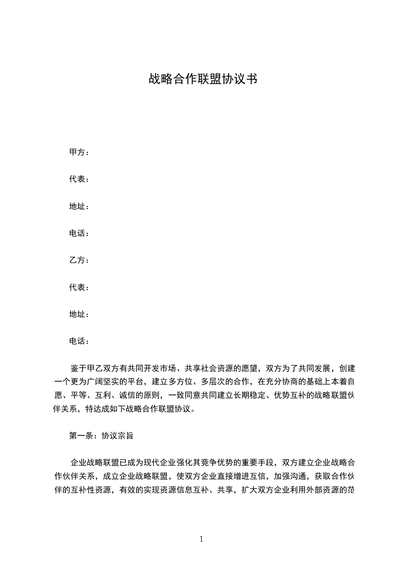 鉴于甲乙双方在物流领域具有各自的优势和资源,为实现互利共赢、共同发展,经友好协商,双方决定建立物流战略联盟,达成如下协议: