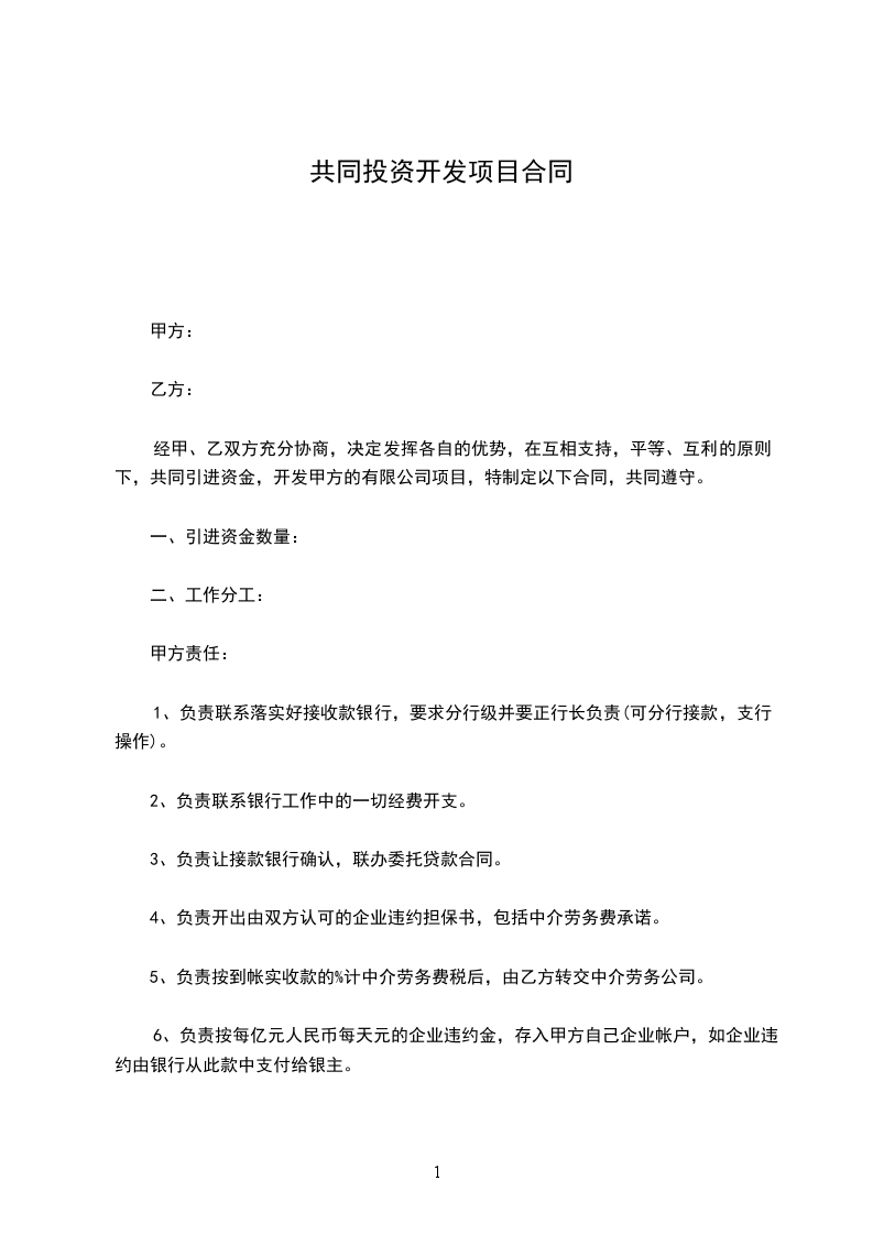 经甲、乙双方充分协商,决定发挥各自的优势,在互相支持,平等、互利的原则下,共同引进资金,开发甲方的有限公司项目,特制定以下合同,共同遵守。