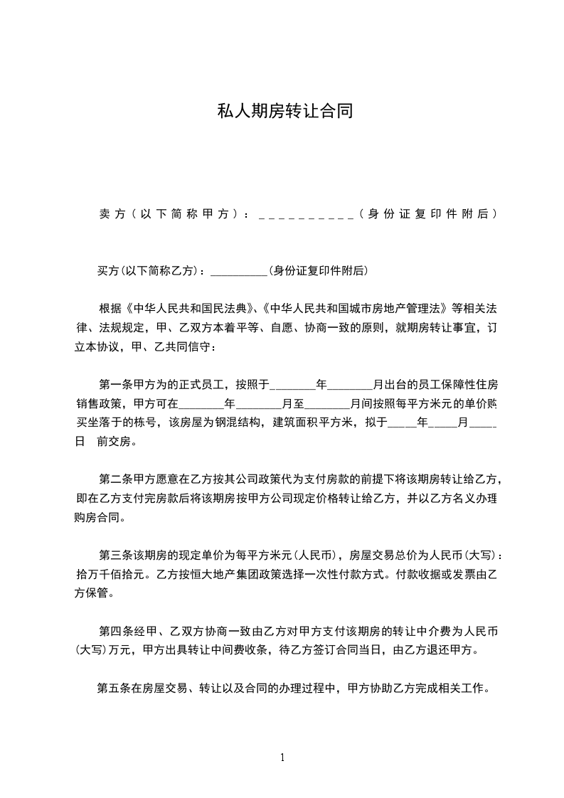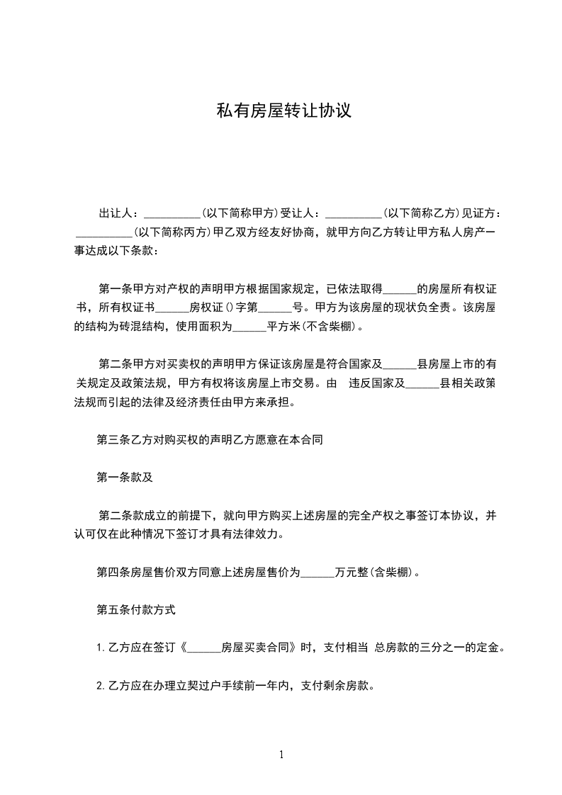 第二条:甲方同意以元/建筑平方米将房产转让于乙方,乙方认可现有建筑面积,当测绘面积与现有建筑面积有误差时,甲乙双方不再追究,转让金包定总额为_____元。
