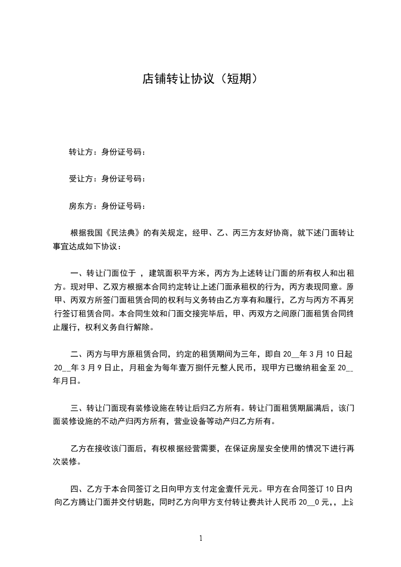 出让方:(以下简称甲方):