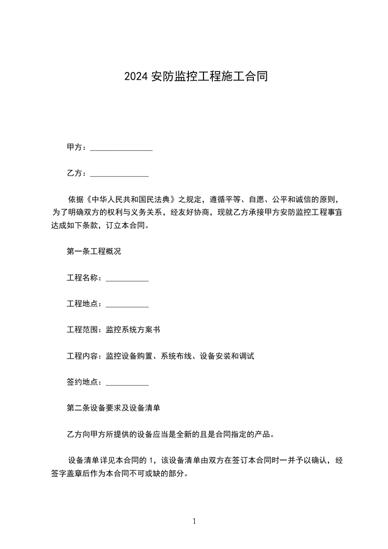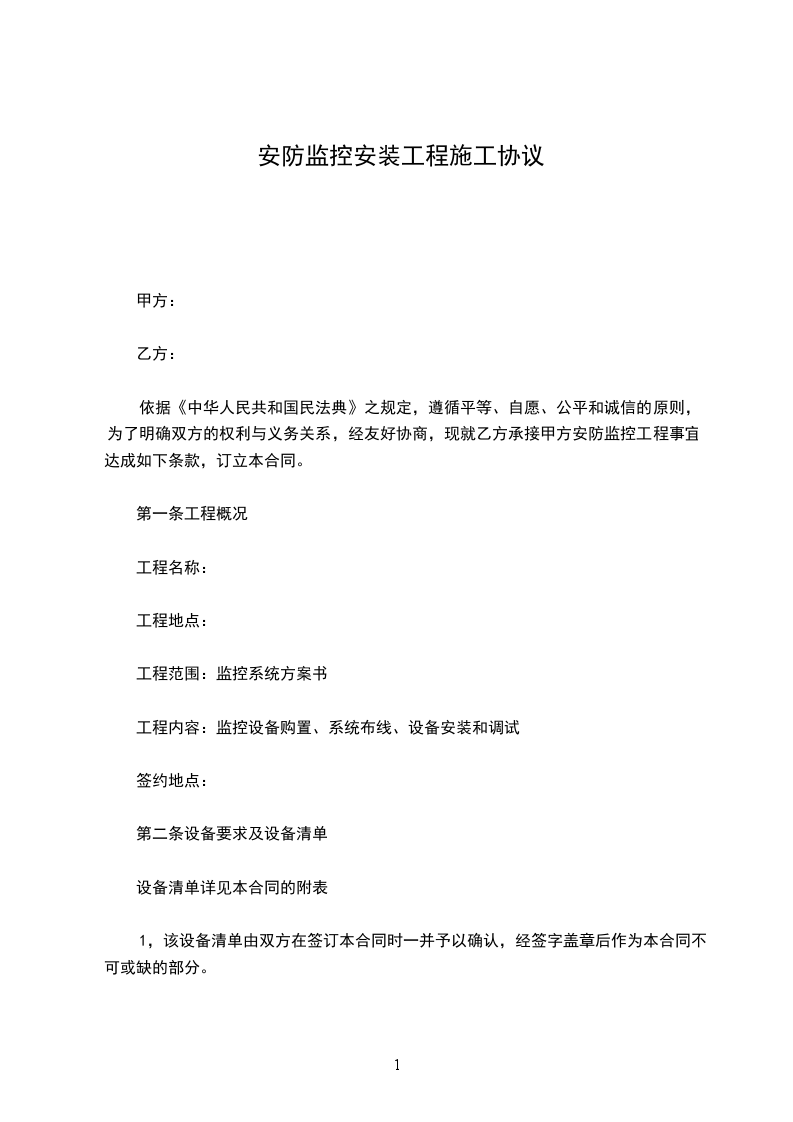工程内容:监控系统布线、设备安装及调试。