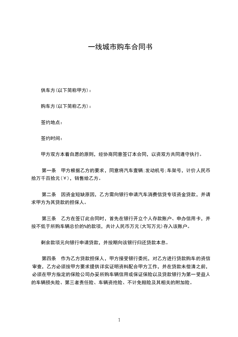 第三条 乙方在签订此合同时,首先在银行开立个人存款账户、申办信用卡,并按不低于所购车辆总价的_____%的款项,共计人民币_____万元(大写万元)存入该账户。