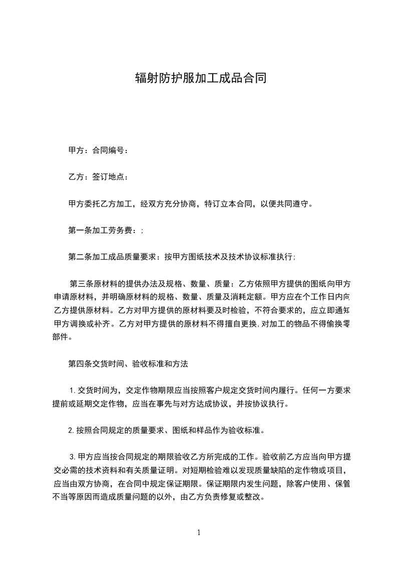 第二条加工成品质量要求:按甲方图纸技术及技术协议标准执行;