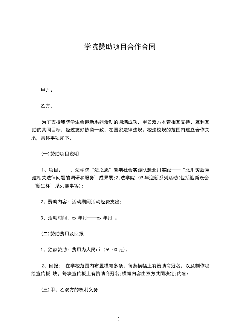 1.甲方赞助乙方举办的[体育项目名称],赞助期限自____年__月__日起至____年__月__日止。