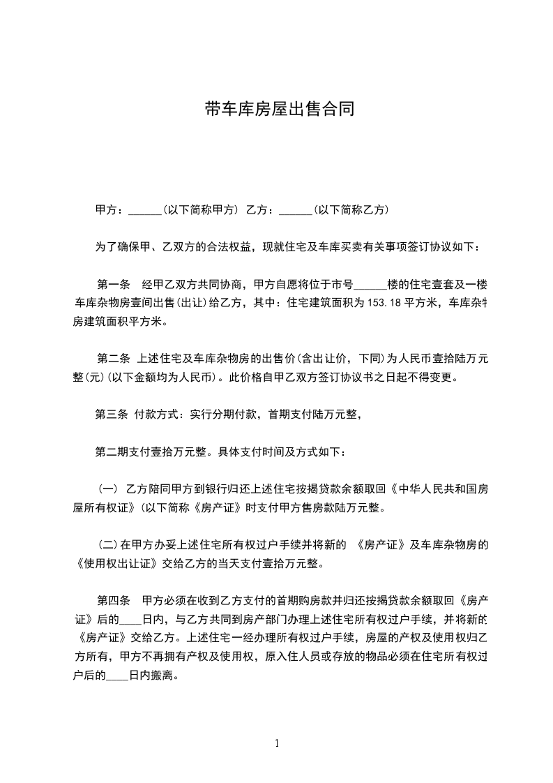 第一条经甲乙双方共同协商,甲方自愿将位于____市______号2栋4单元8楼的住宅壹套及一楼车库杂物房壹间出售(出让)给乙方,其中:住宅建筑面积为153.18平方米,车库杂物房建筑面积______平方米。