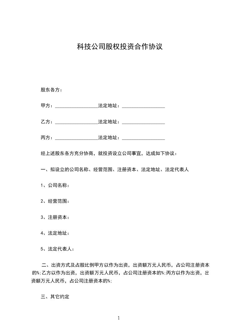 甲、乙、双方经充分协商,在平等自愿的基础上就入股出资_______________事宜达成如下协议: