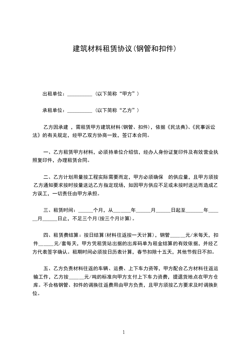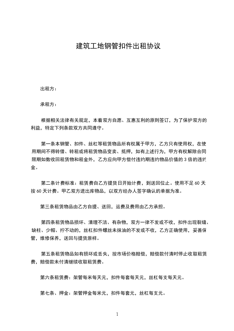 第七条、押金:架管押金每米元,扣件每套元,丝杠每支元。