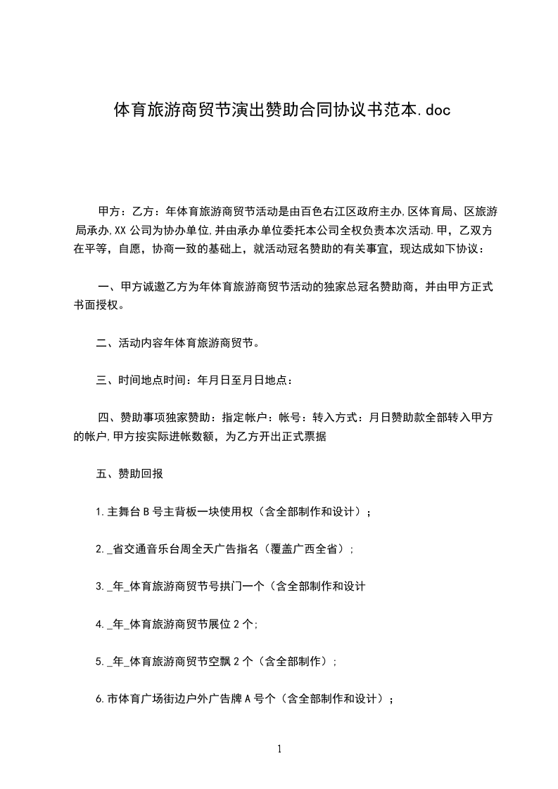 1.甲方赞助乙方[具体活动名称],赞助金额为人民币______元(大写______元整)。