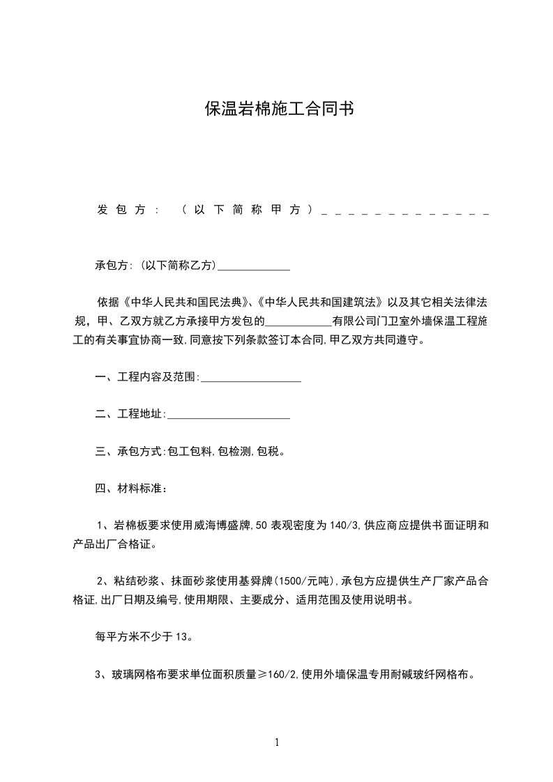 以实际发生数量乘以单价岩棉外墙保温每平方米____元、大理石贴面岩棉外墙保温每平方米_____元。
