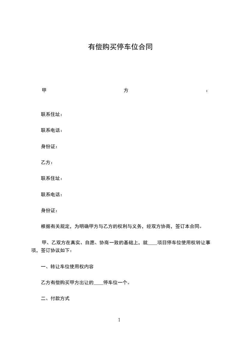 乙方有偿购买甲方出让的____停车位一个。