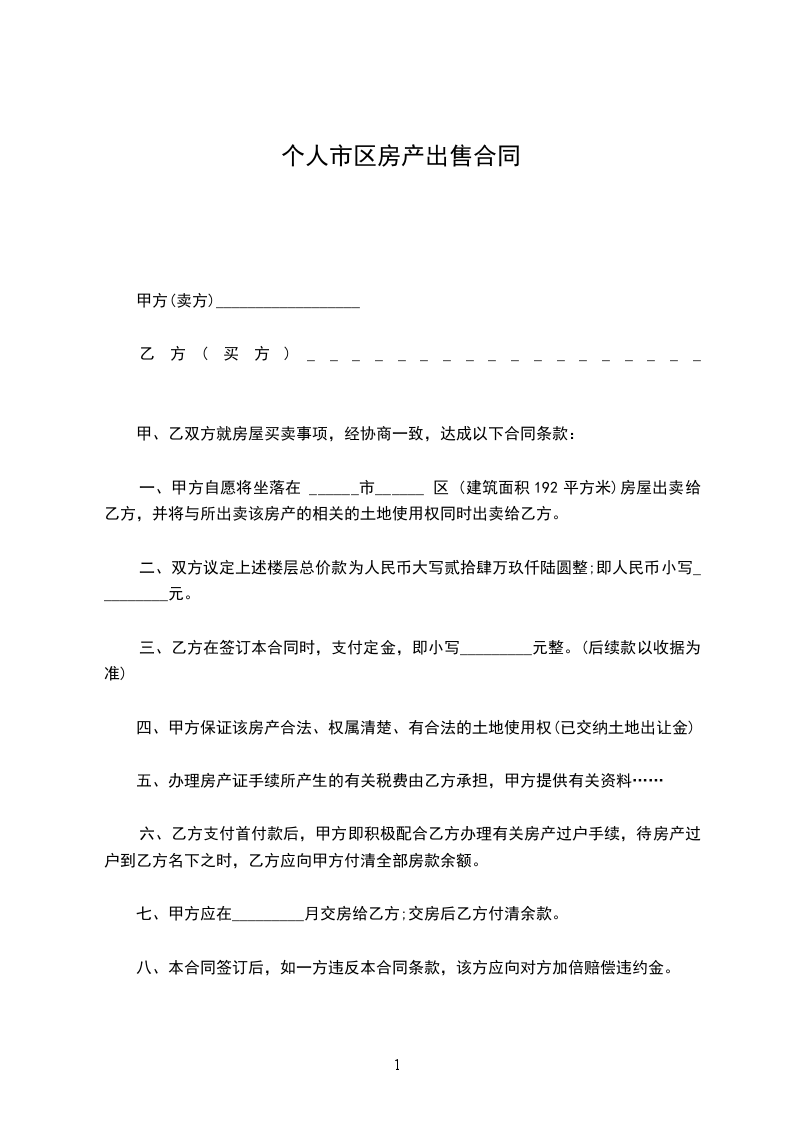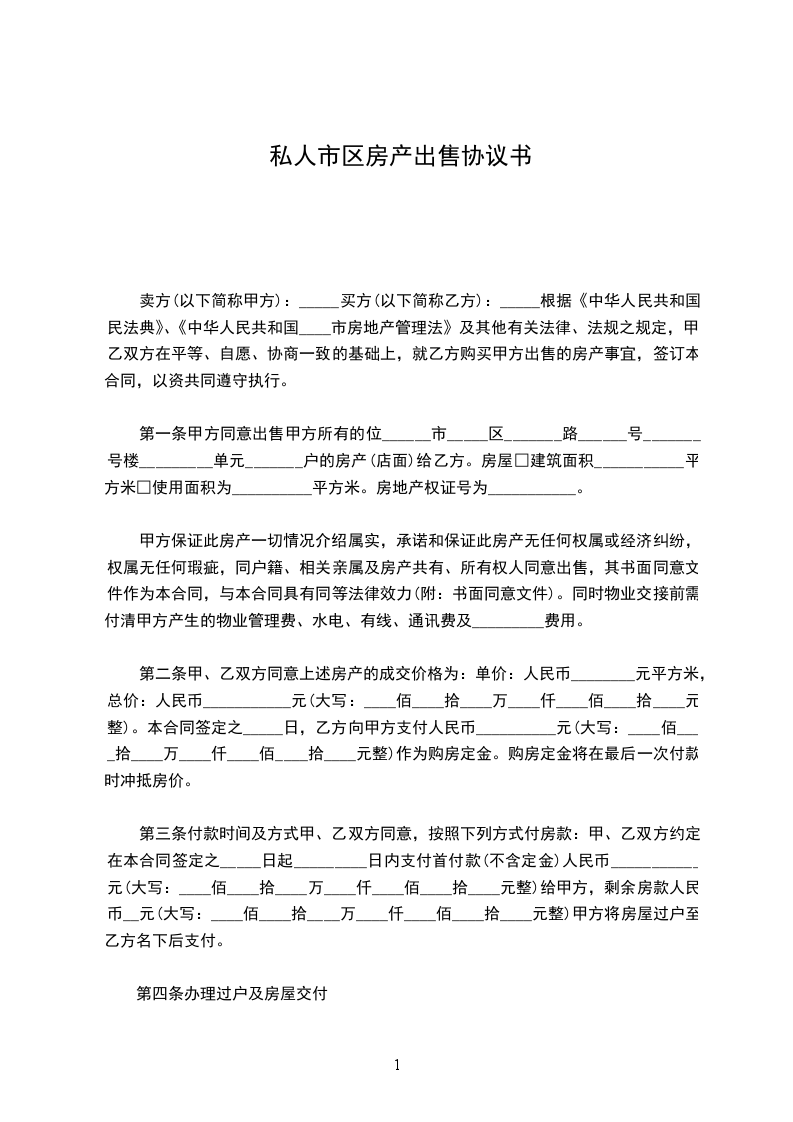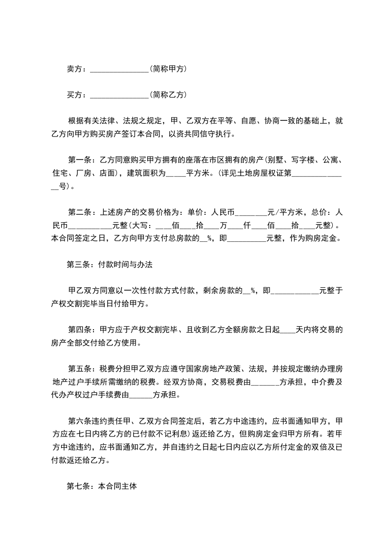 第一条乙方购买甲方座落在____市____街____巷____号的房屋栋间,建筑面积为____平方米。