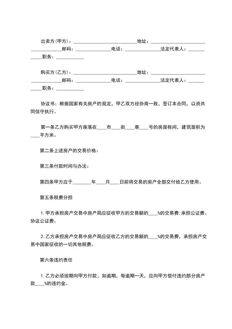 2.甲方必须按期将房产交付乙方使用,否则,每逾期一天,应向乙方偿付违约部分房产款____%的违约金。