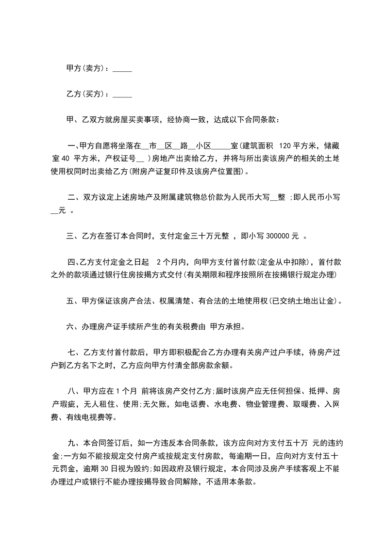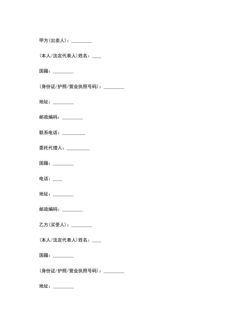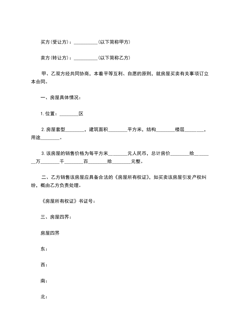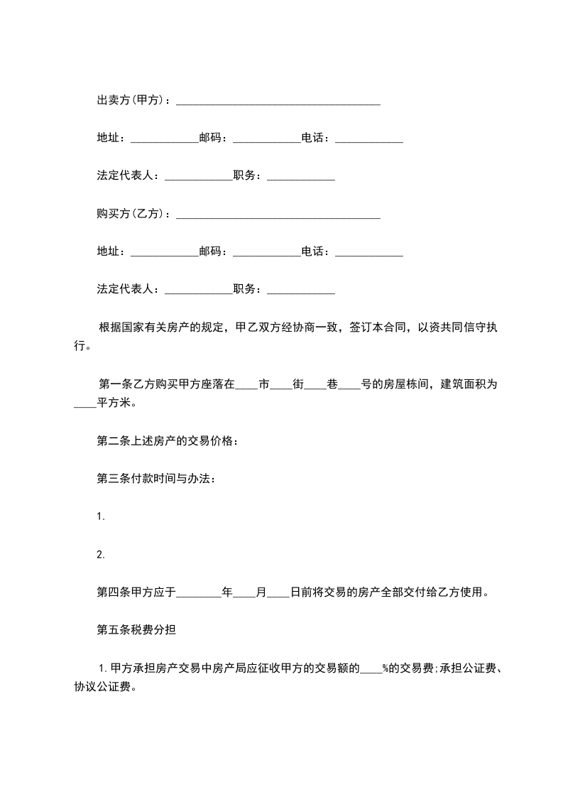 第一条乙方购买甲方座落在____市____街____巷____号的房屋栋间,建筑面积为____平方米。