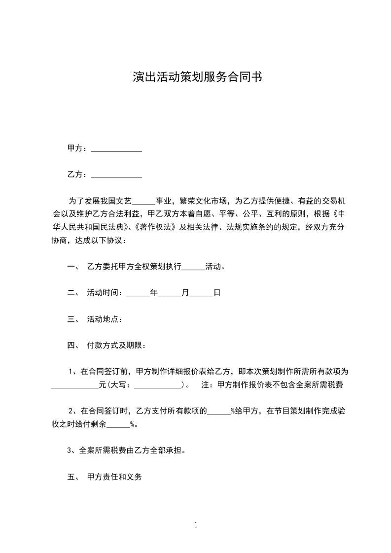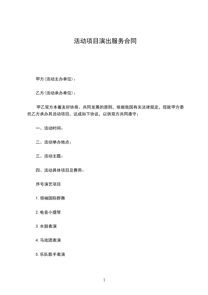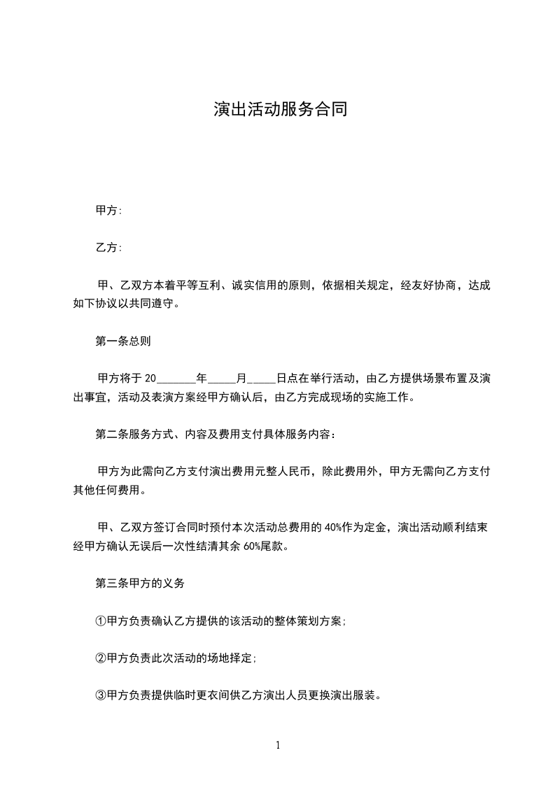 篇1演出活动服务合同