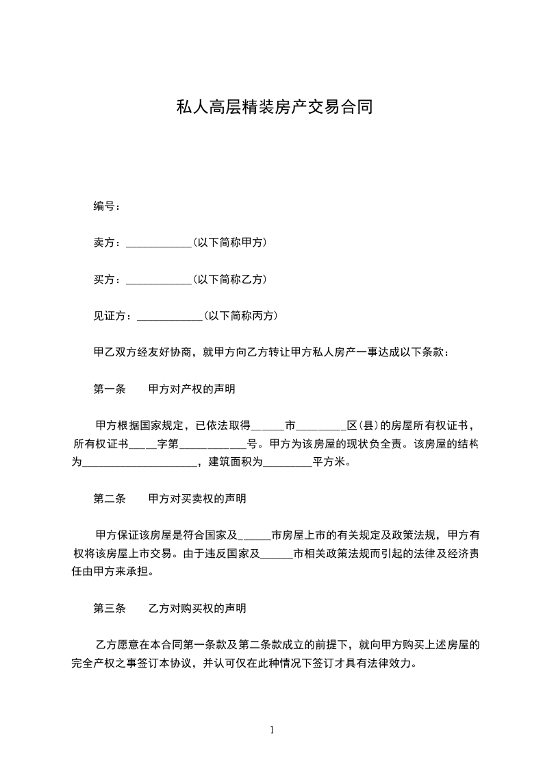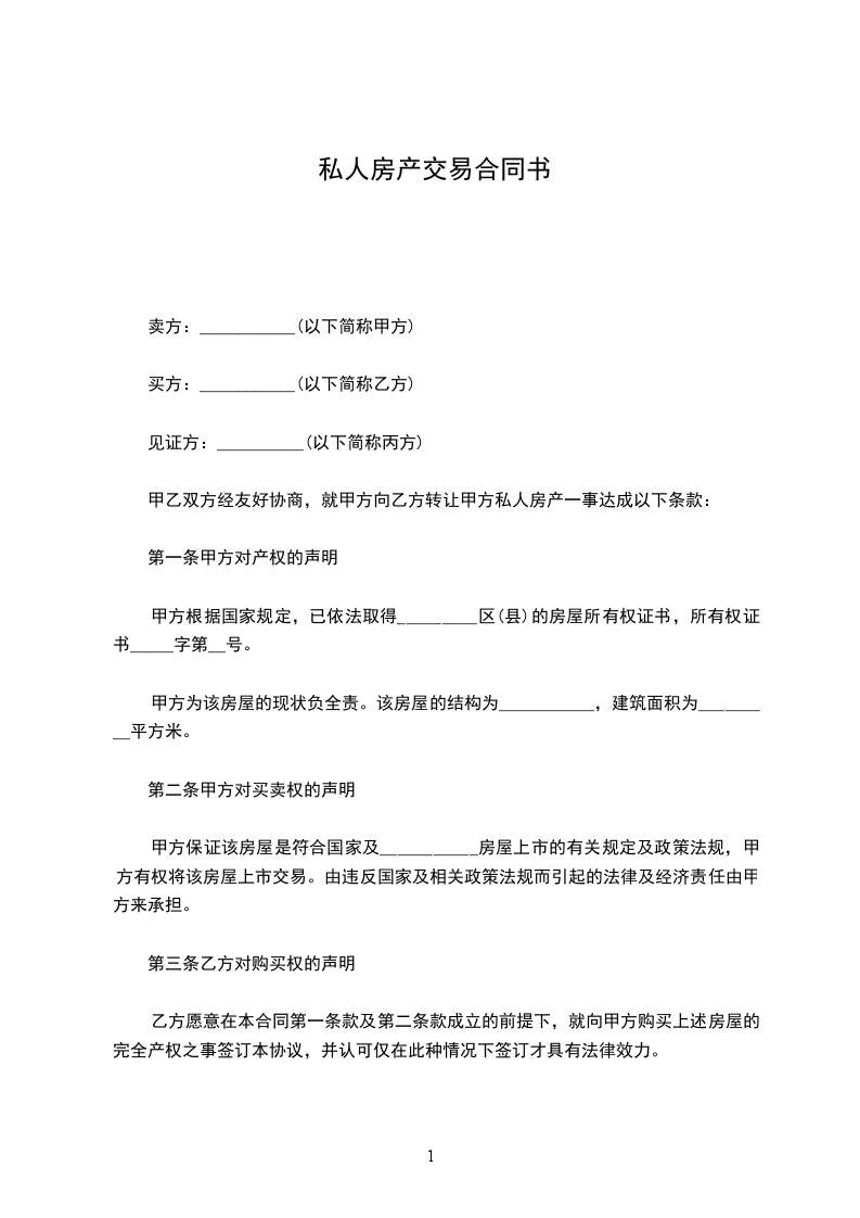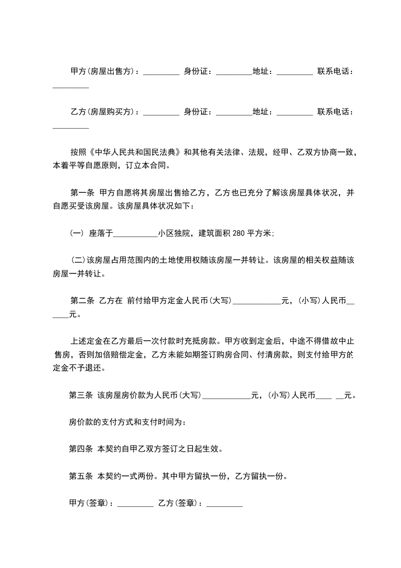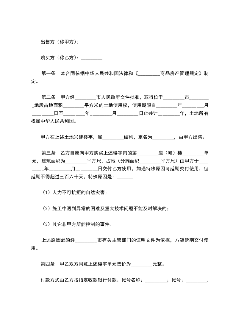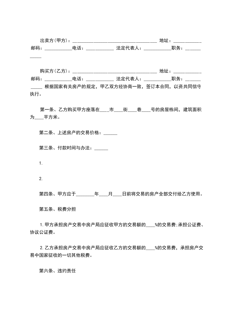 第一条乙方购买甲方座落在____市____街____巷____号的房屋栋间,建筑面积为____平方米。