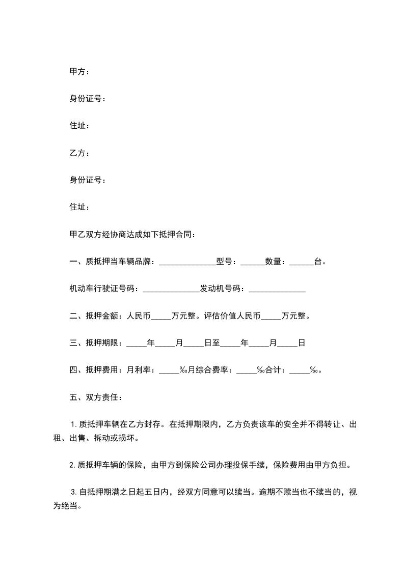 4.在典当期限届满或乙方提前清偿全部债务后,应及时返还抵押车辆及相关证件。