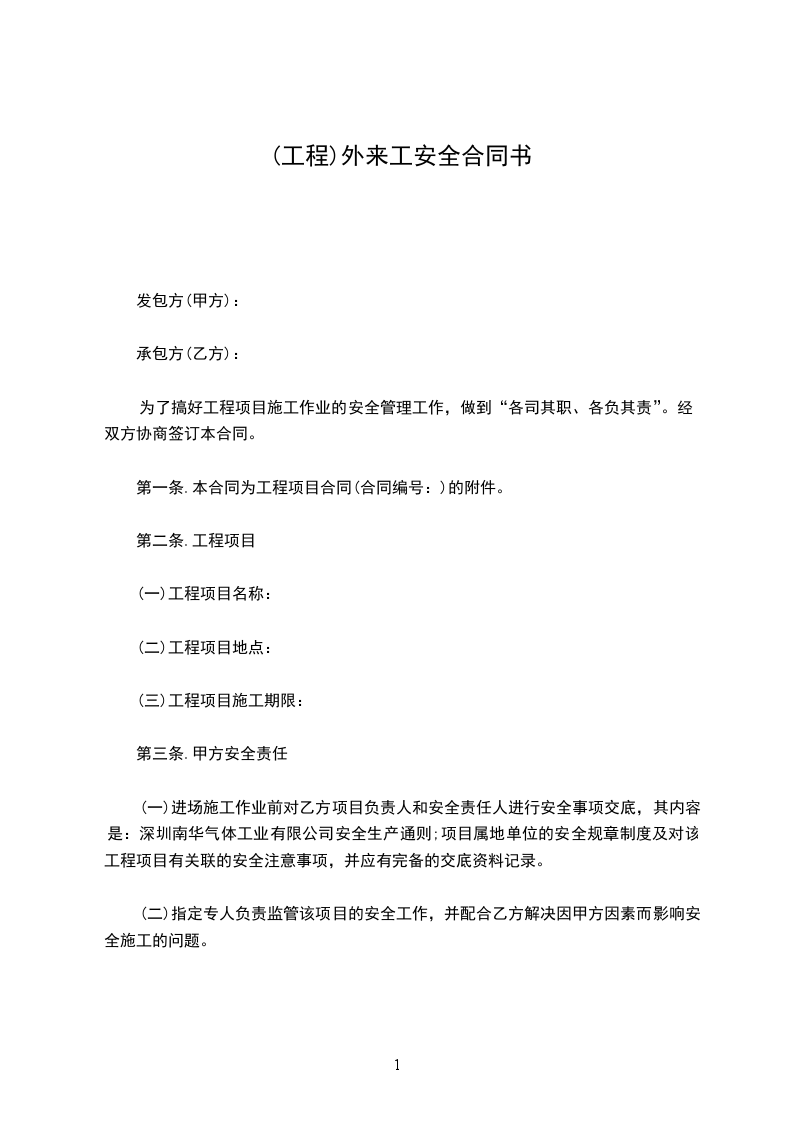 为了搞好工程项目施工作业的安全管理工作,做到“各司其职、各负其责”。经双方协商签订本合同。