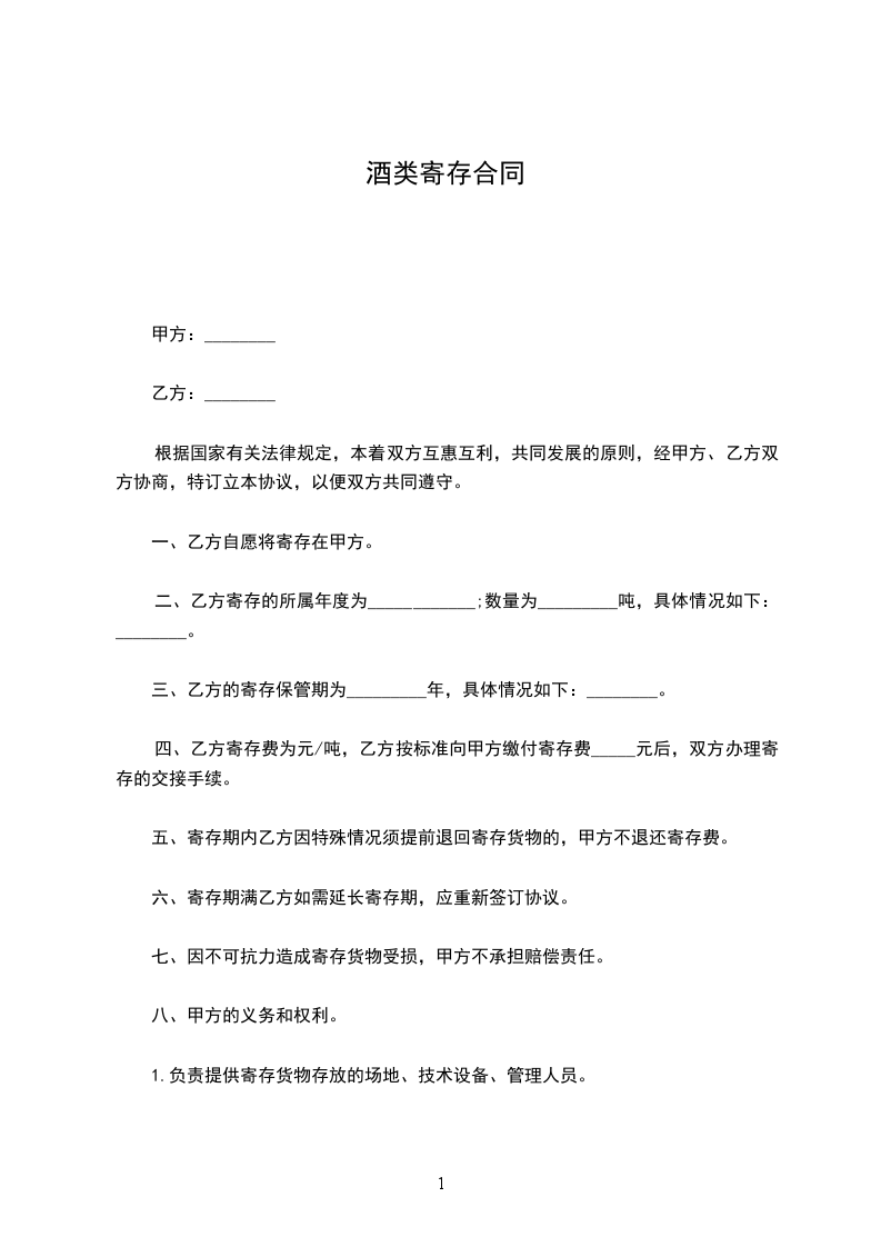 寄托人(简称甲方)