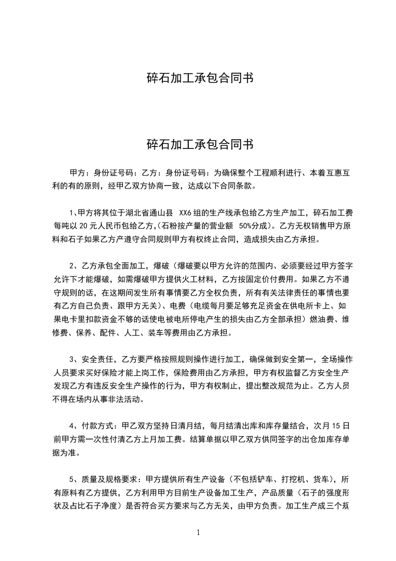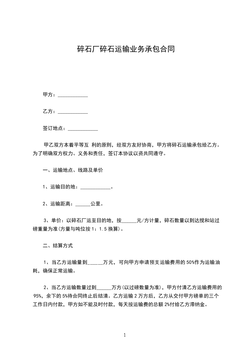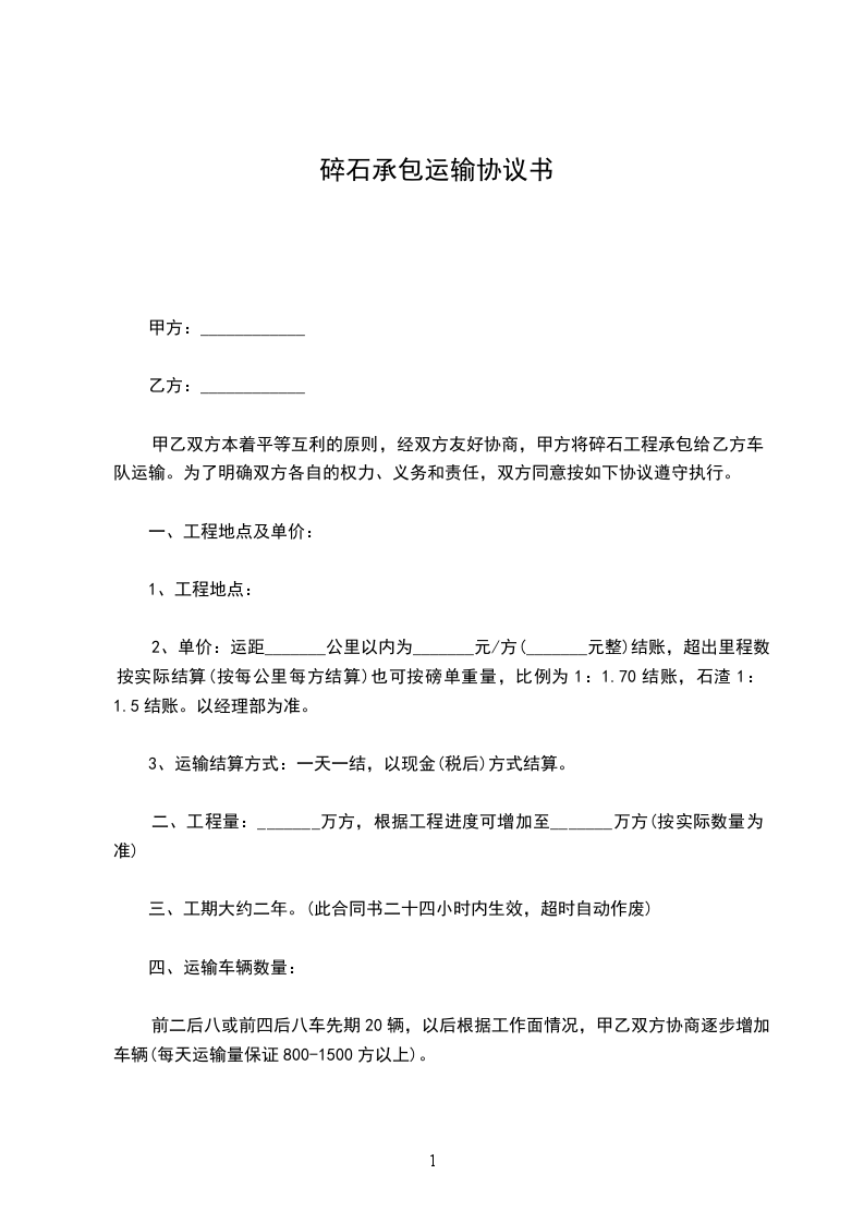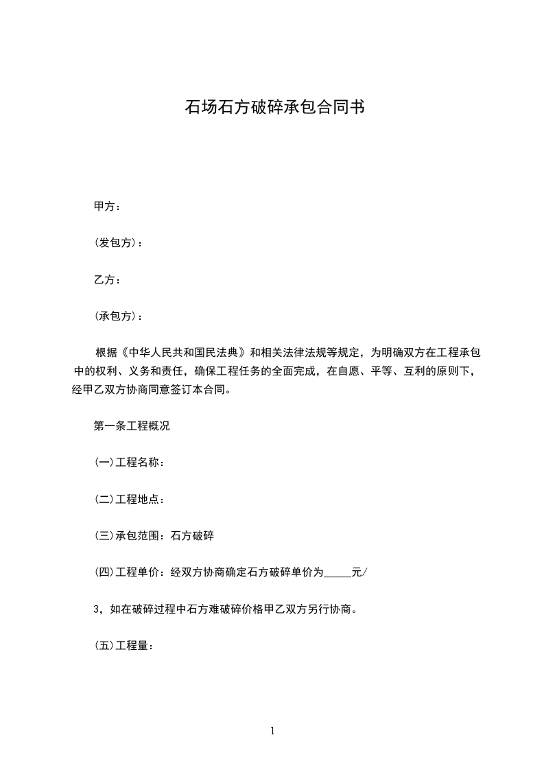 (四)工程单价:经双方协商确定石方破碎单价为_____元/