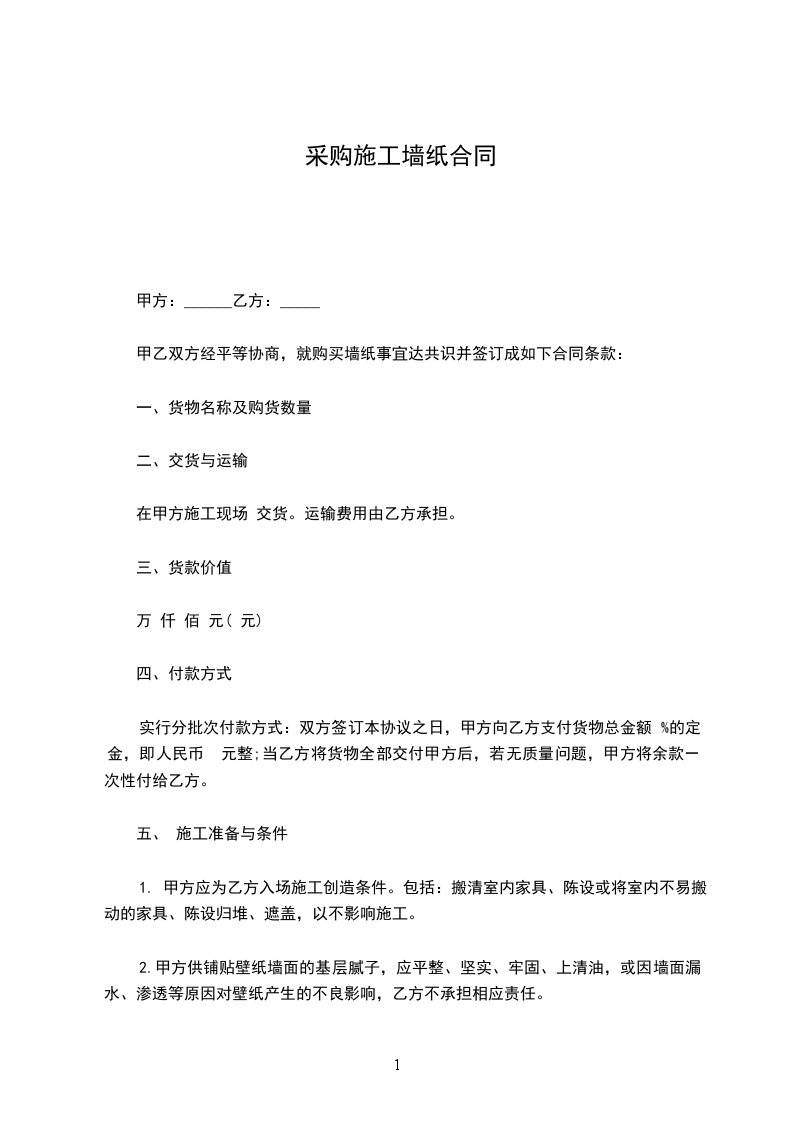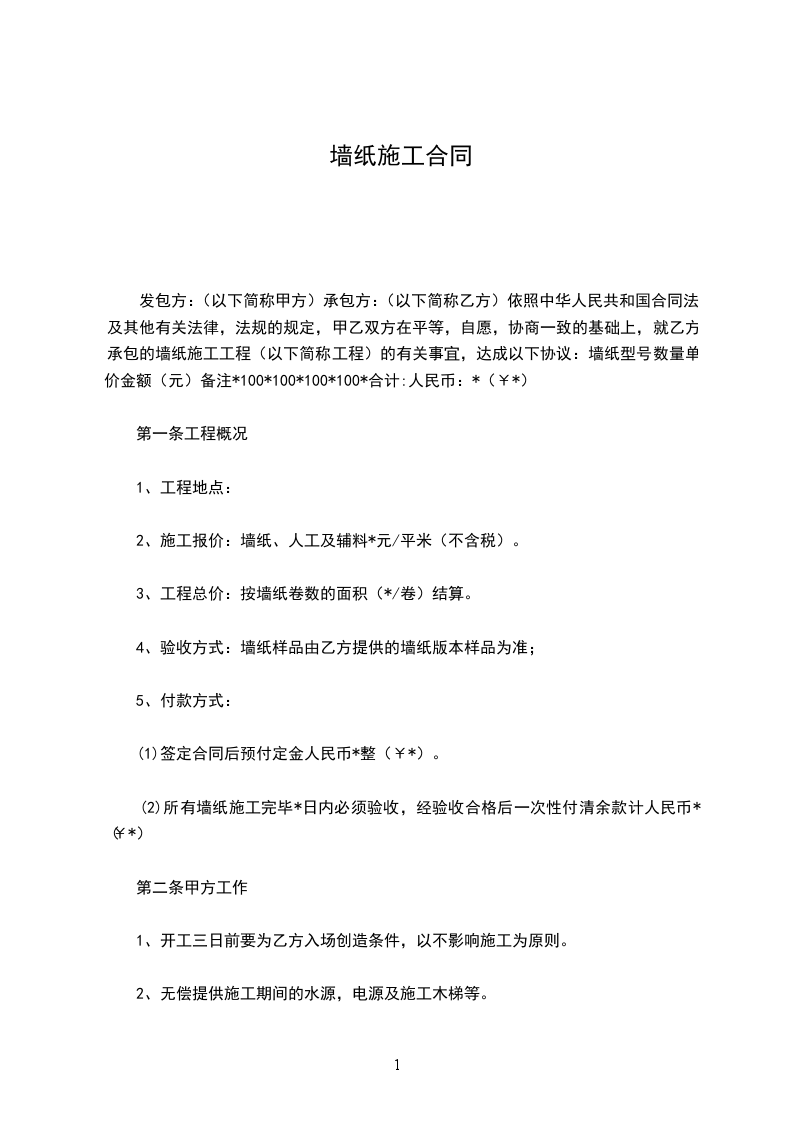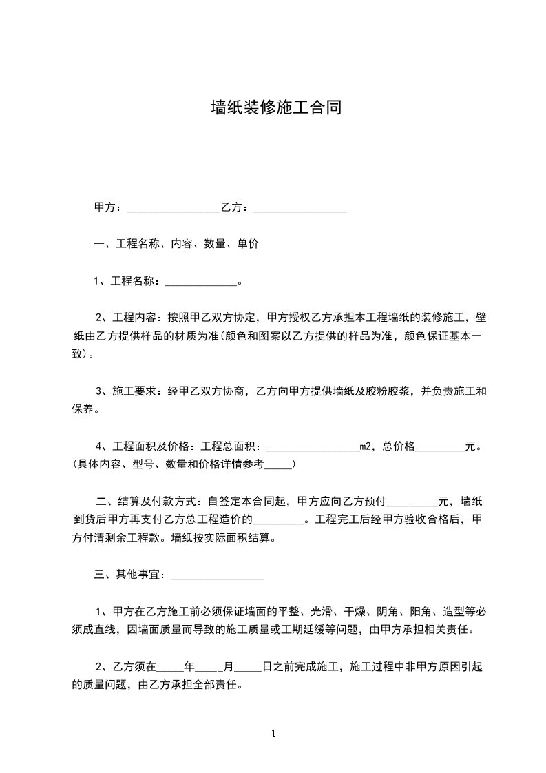 施工完毕后,因施工造成的质量问题,乙方提供半年的免费售后服务,如果因为甲方的人为原因破坏引起的墙纸问题,甲方需付人工费每工200元的维修费。