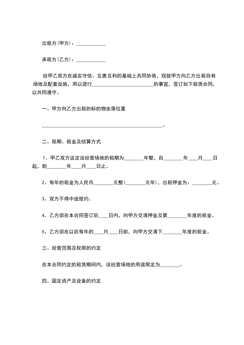 乙方承租甲方合法拥有的位于_______________,面积共计______亩,其中轻钢结构库房______平方米,用途以营业执照核准的经营范围为准。