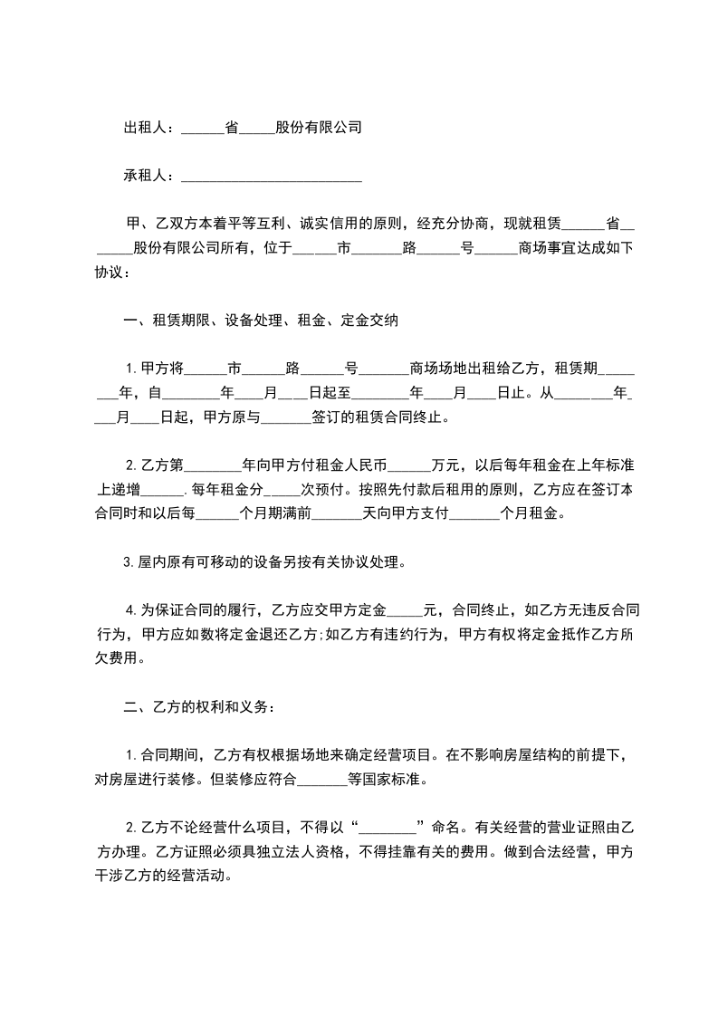 本合同租金实行每年上交款支付制,租金标准为每年______元人民币,租金的支付时间为每年______月______日前。