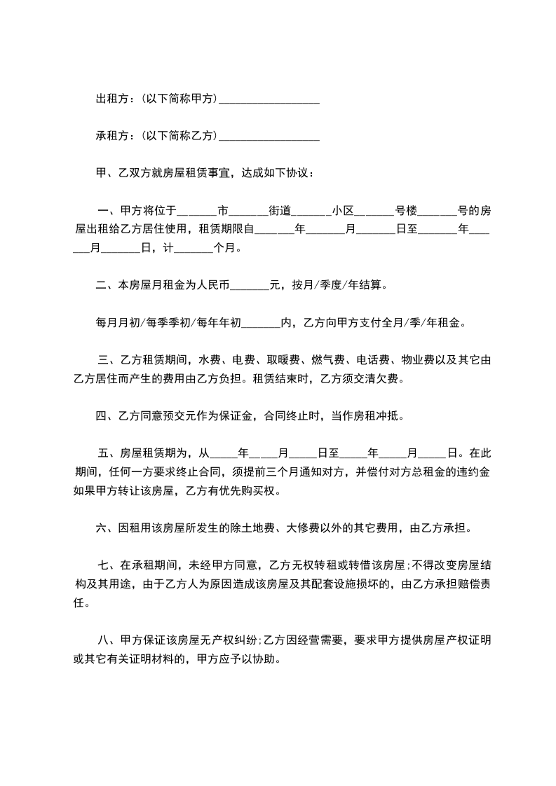 2、乙方向甲方承诺,在转租期间不将该房屋承租权转让给他人或与他人承租的房屋交换使用。