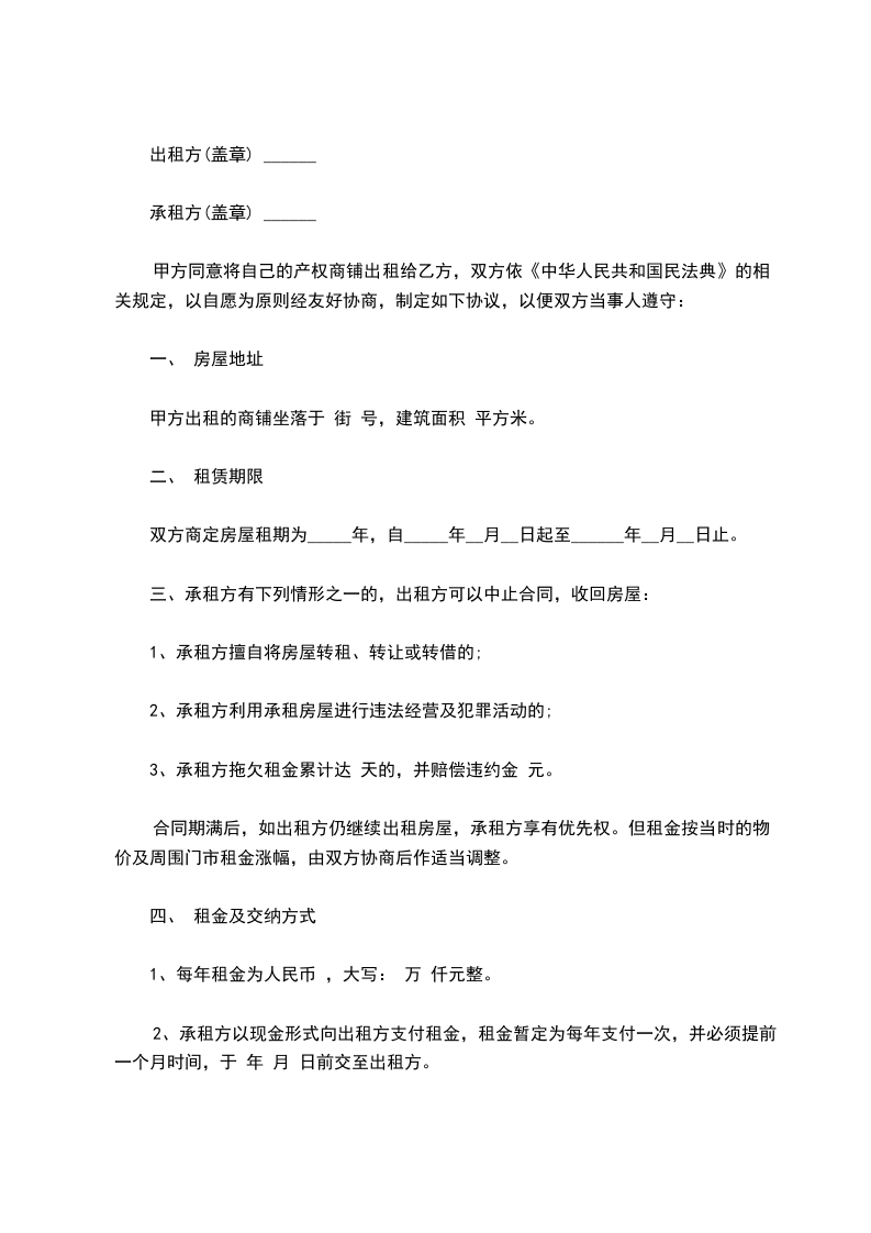 甲方出租的商铺坐落于_____街_____号,建筑面积_____平方米。