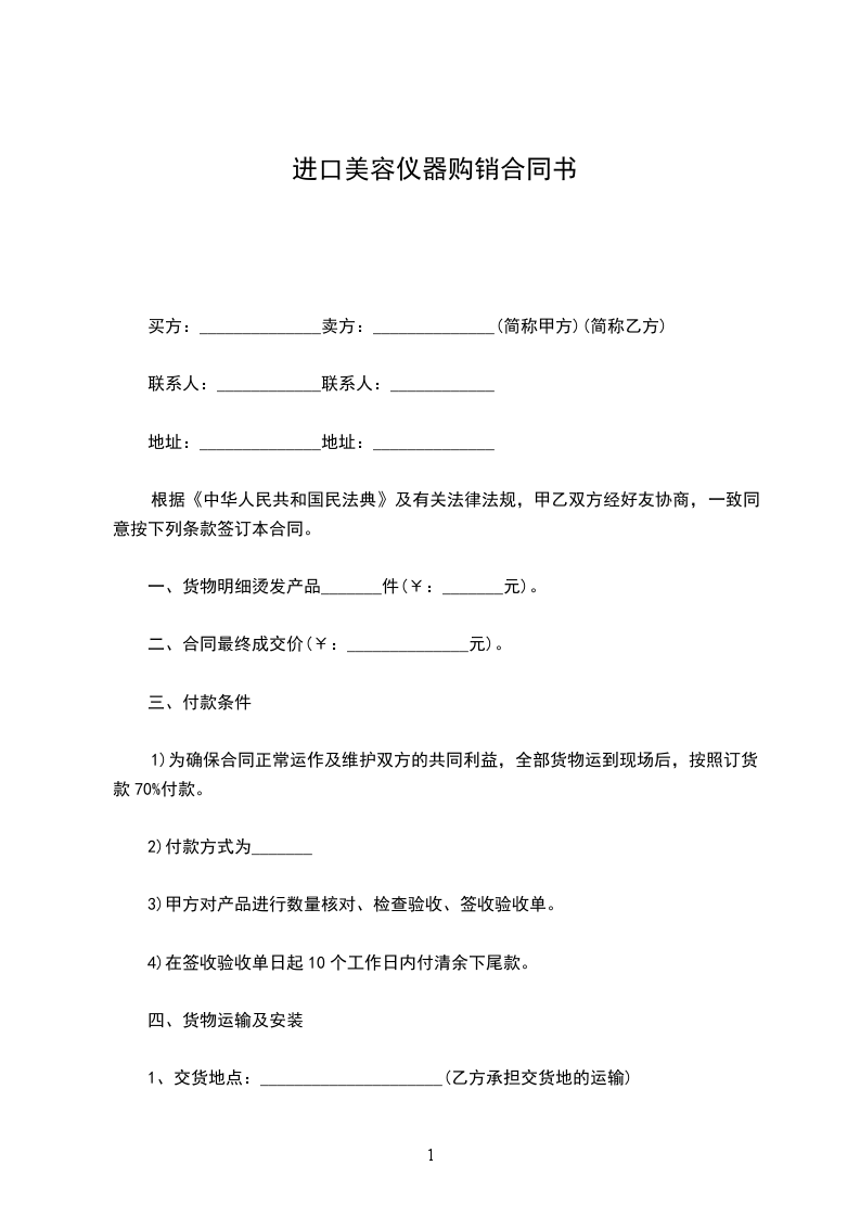 1、交货地点:_____________________(乙方承担交货地的运输)