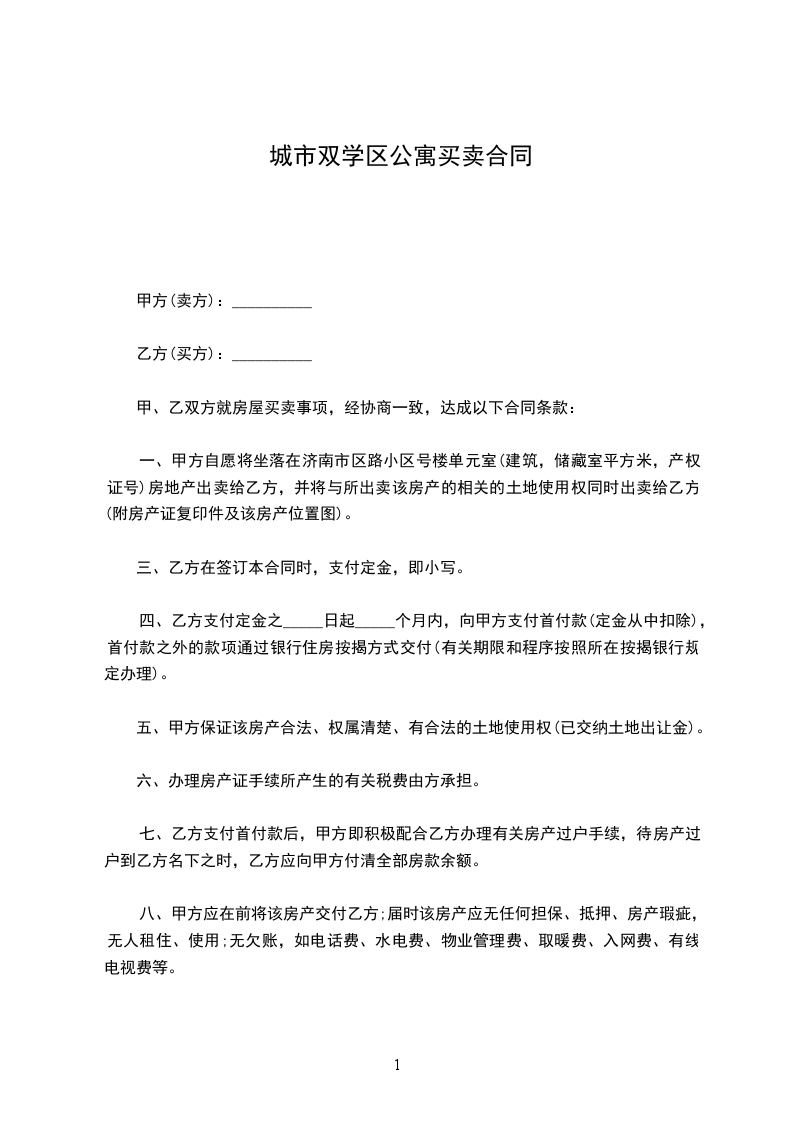 出卖方(甲方):_________________ 购买方(乙方):__________________