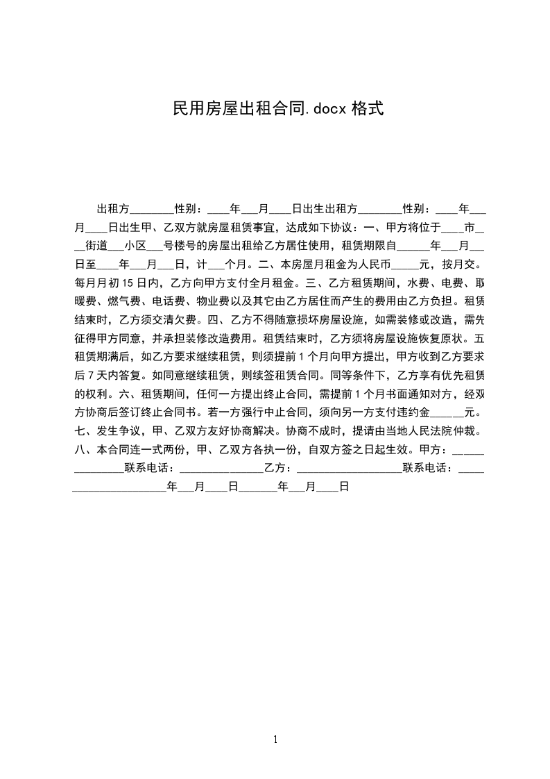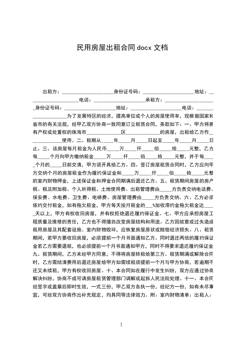 经双方协商甲方将位于______________________________房屋出租给乙方居住使用。