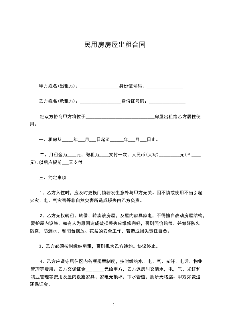4、乙方应遵守居住区内各项规章制度,按时缴纳水、电、气、光纤、电话、物业管理等费用。乙方交保证金________元给甲方,乙方退房时交清水,电,气,光纤和物业管理等费用及屋内设施家具、家电无损坏,下水管道,厕所无堵漏。甲方如数退还保证金。