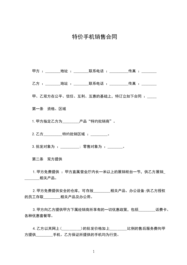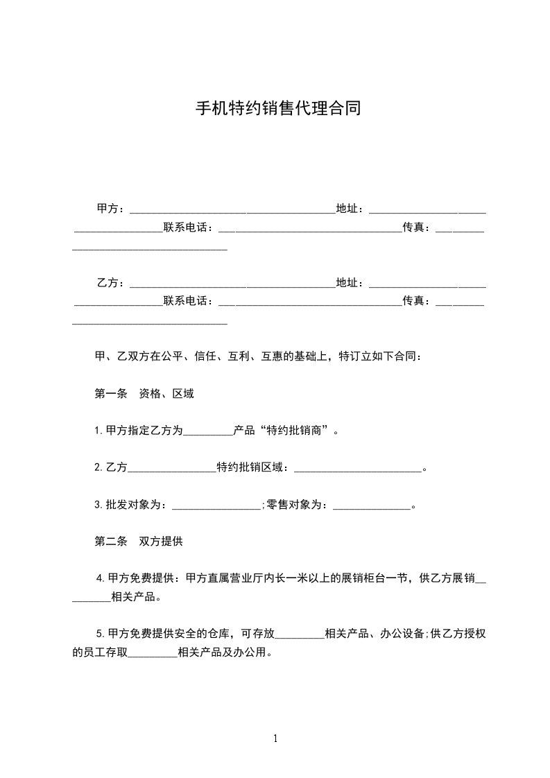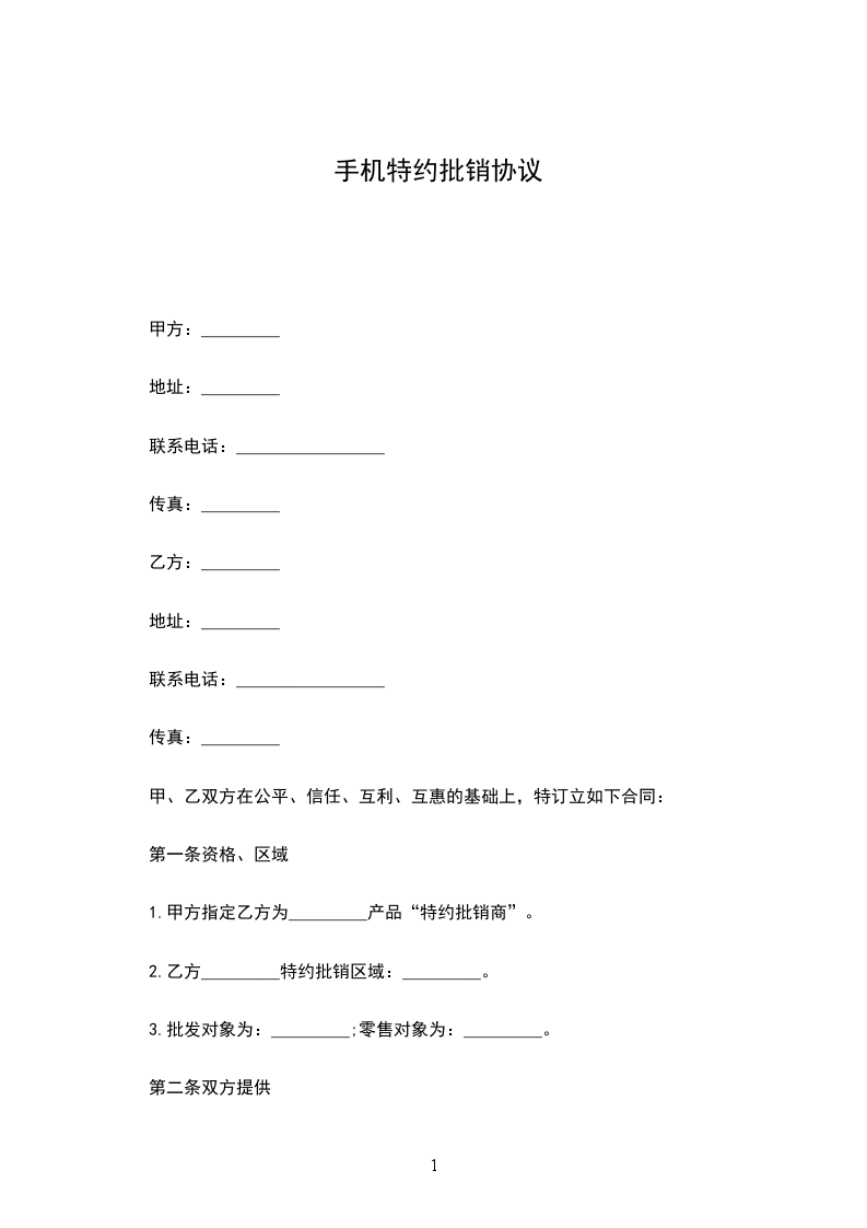 1.甲方指定乙方为_________产品“特约批销商”。