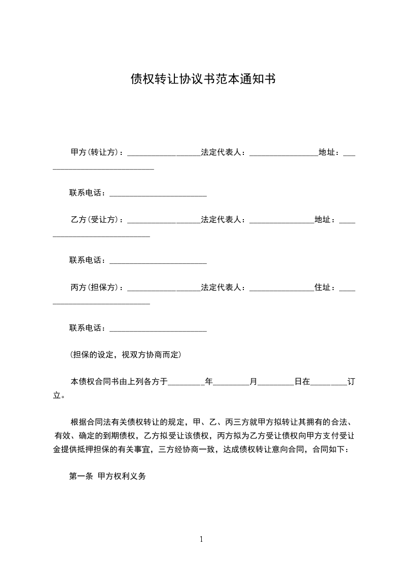 篇1债权转让通知协议