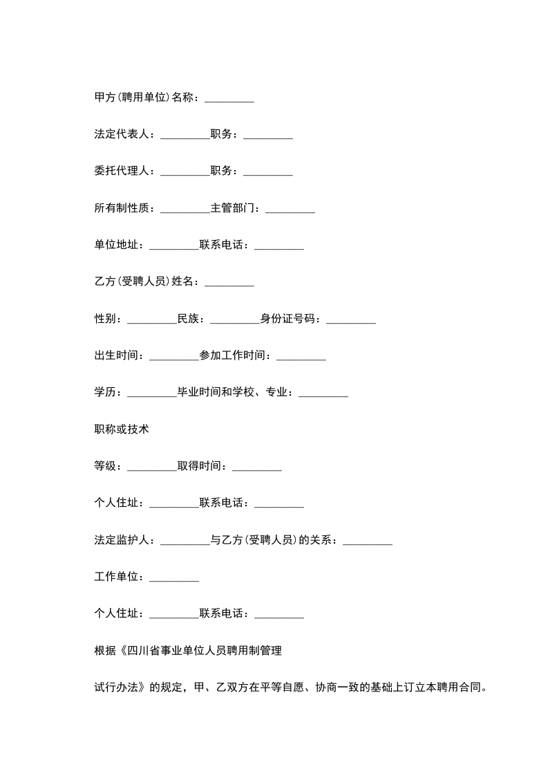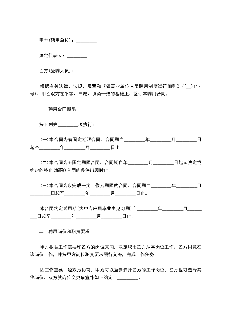 根据《________省事业单位人员聘用制管理试行办法》的规定,甲、乙双方在平等自愿、协商一致的基础上订立本聘用合同。