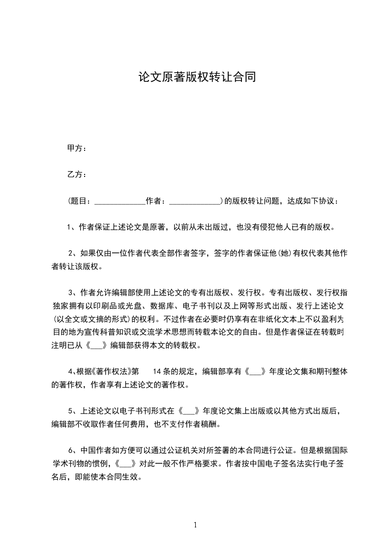 第三条甲方自愿将其拥有的对该论文的以下权利转让给乙方: