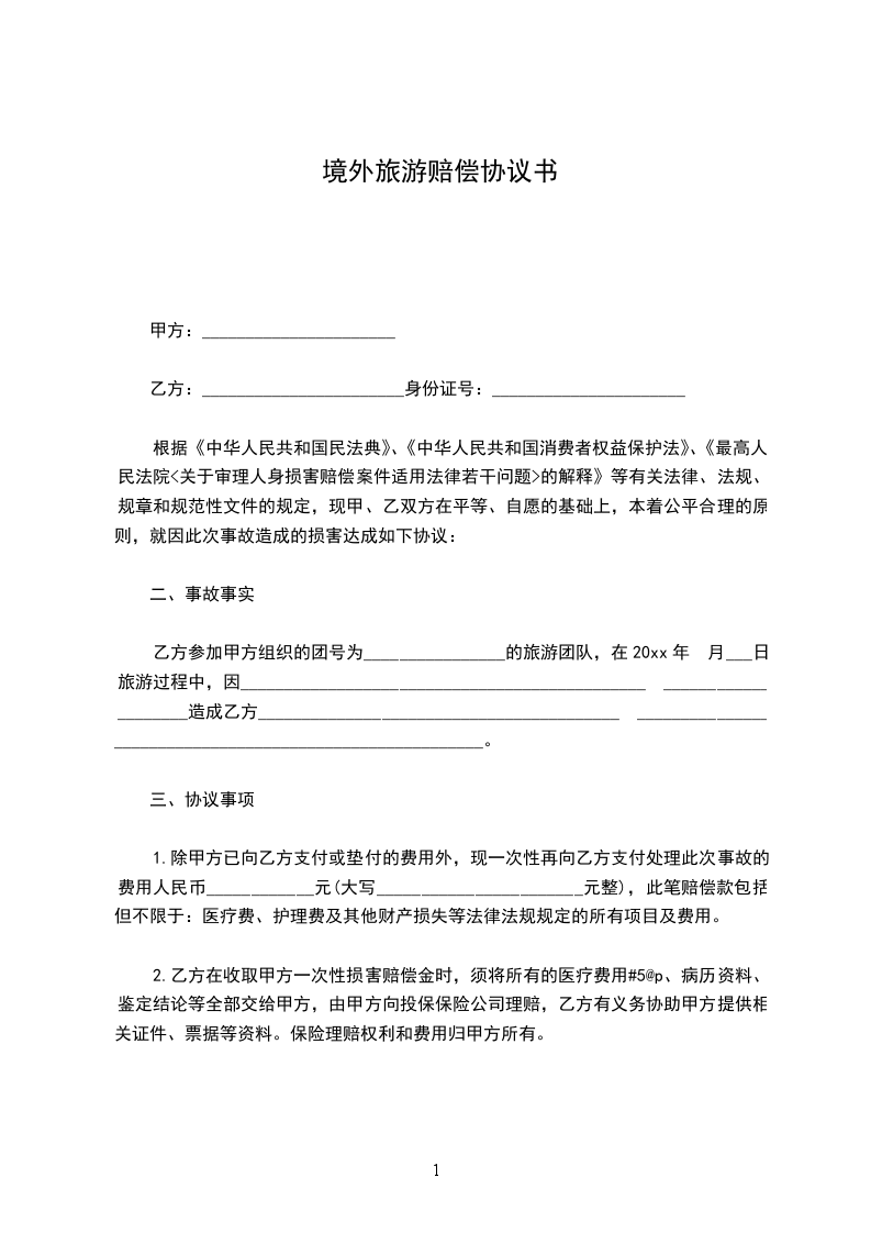 1.除甲方已向乙方支付或垫付的费用外,现一次性再向乙方支付处理此次事故的费用人民币____________元(大写_______________________元整),此笔赔偿款包括但不限于:医疗费、护理费及其他财产损失等法律法规规定的所有项目及费用。