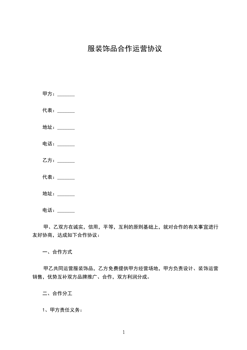 甲乙双方经过友好协商,根据有关规定,就______服饰加盟店事宜,在互惠互利的基础上达成以下合同,并承诺共同遵守。
