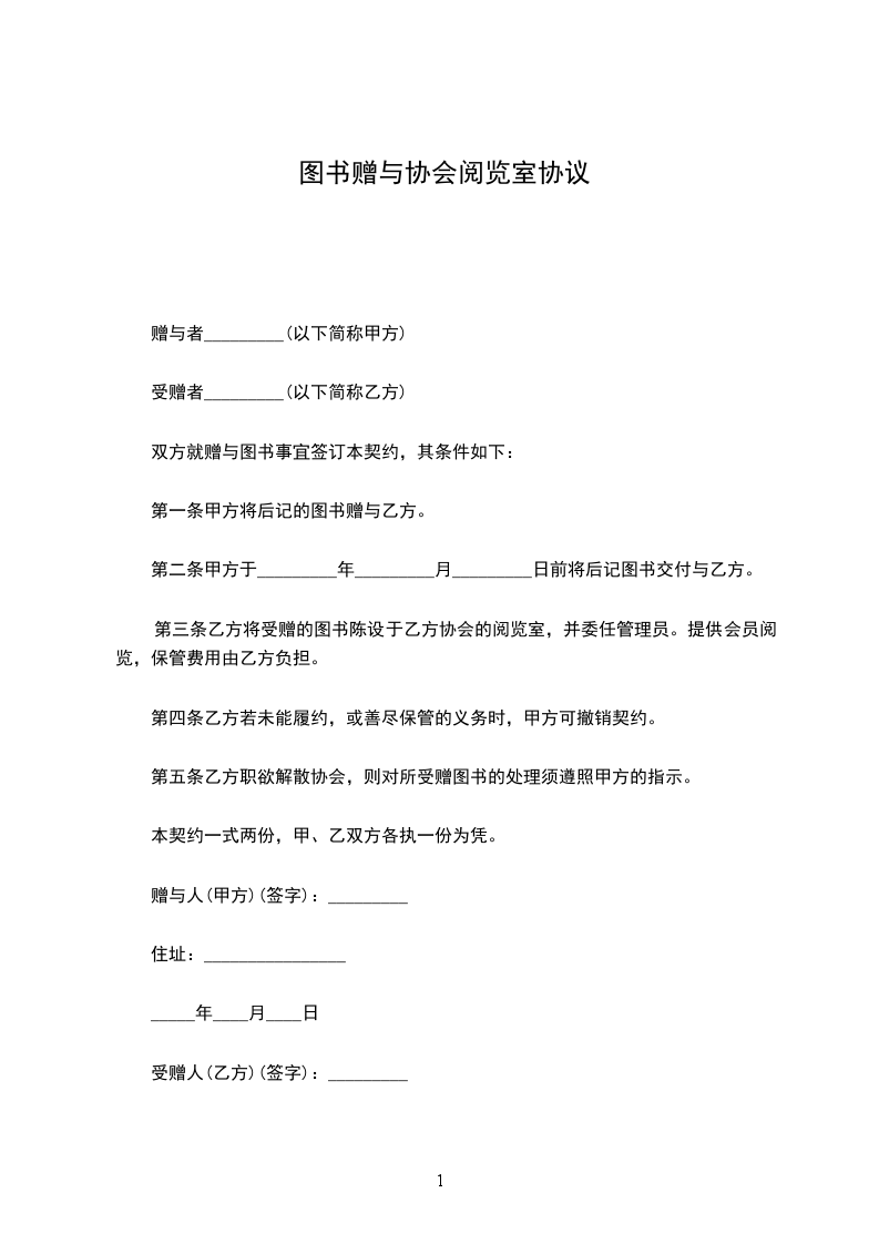精选赠与合同书赠与者_________(以下简称甲方)受赠者_________(以下简称乙方),双方就赠与图书事宜签署本契约,其前提如下: