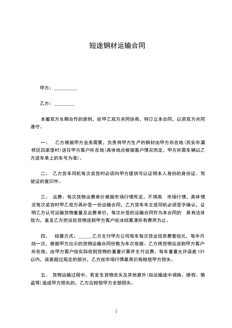 1、乙方为甲方提供货物运输服务,甲方有权指定乙方运输车辆的货物装车地点、行驶路线及收货地点。