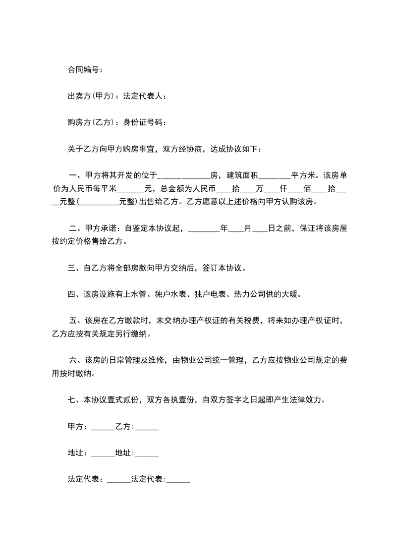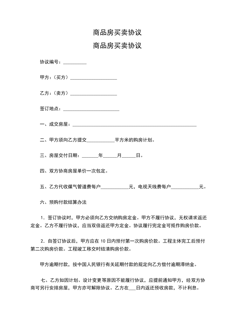 1.签订协议时,甲方必须向乙方交纳购房定金。甲方不履行协议,无权请求返还定金。乙方不履行协议,应当双倍返还甲方定金。协议履行完定金可抵作购房价款。