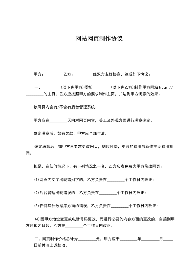 4、乙方开始网页制作工作,整个网站制作时间为__个工作日,所有工作将在__月__日前完成。