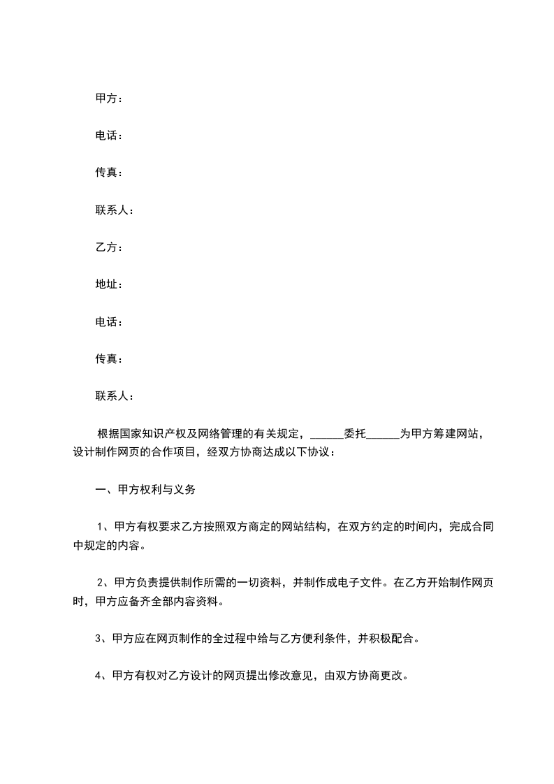 甲方委托乙方制作主页,帮助甲方树立企业形象,扩大宣传,增强企业知名度,拓宽业务渠道,为明确双方责任,根据《中华人民共和国民法典》及相关法律法规规定,经双方协商,签订此合同,以期双方共同遵守。