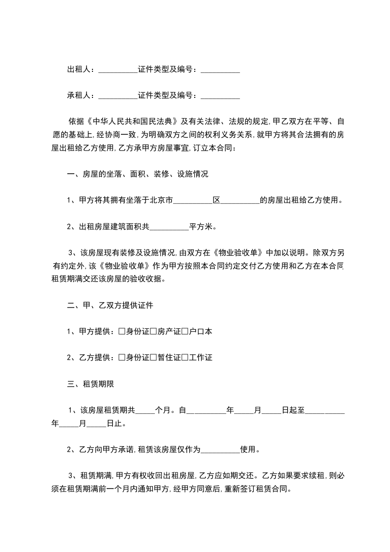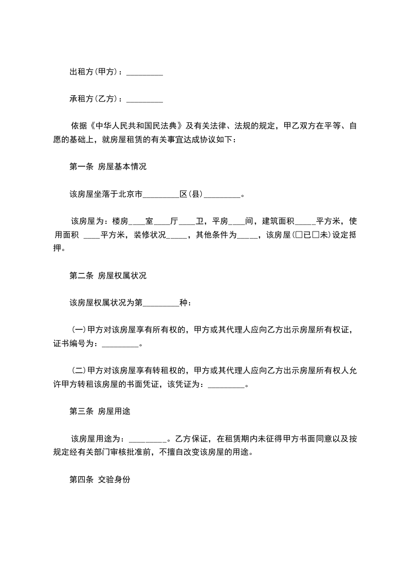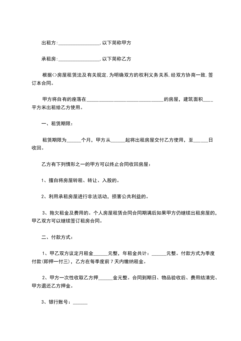 承租房:_________________,以下简称乙方