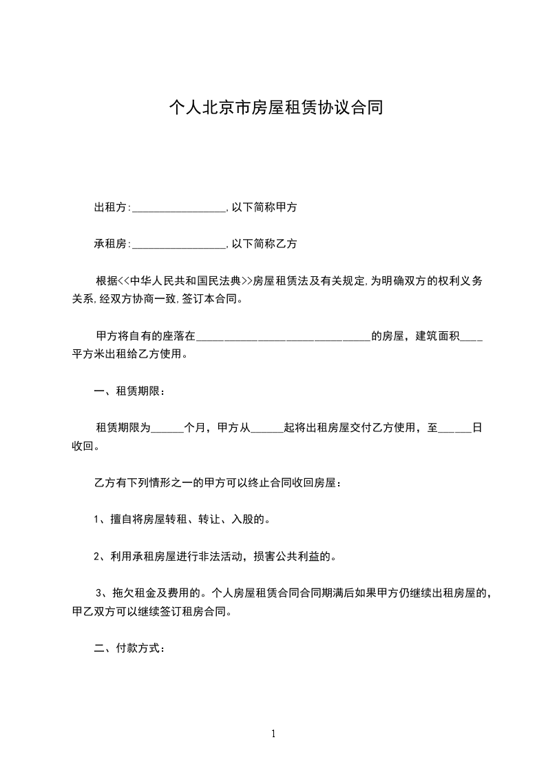 1、甲乙双方议定月租金______元整,年租金共计:______元整。