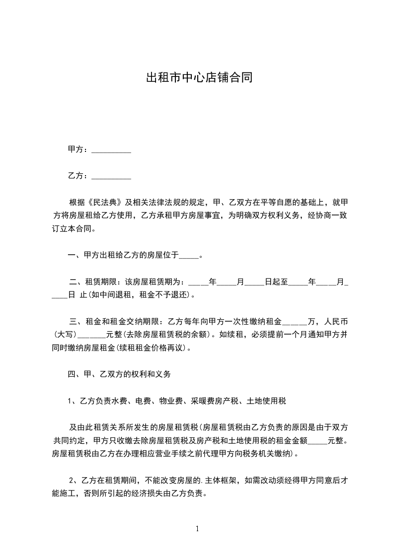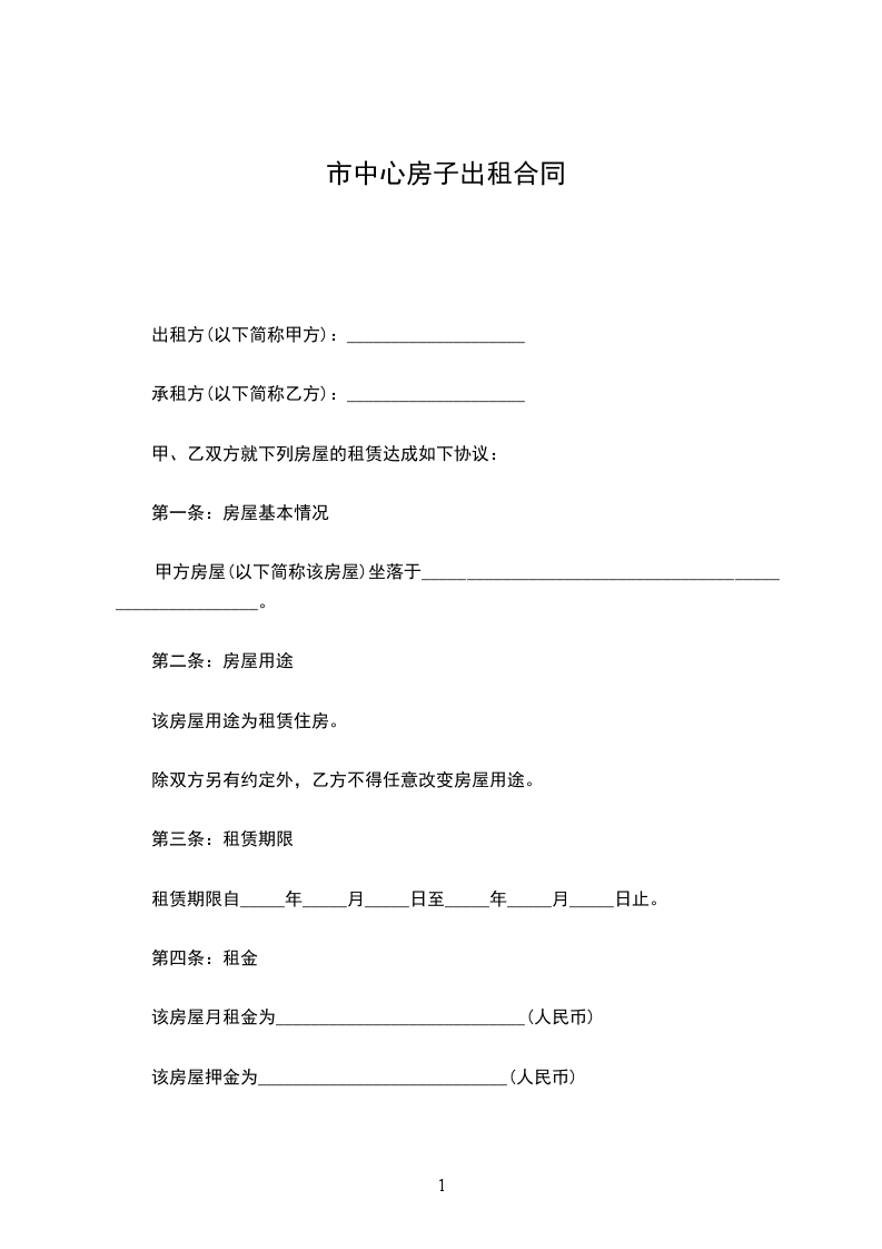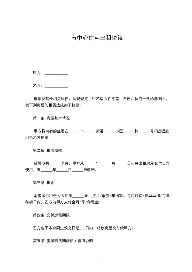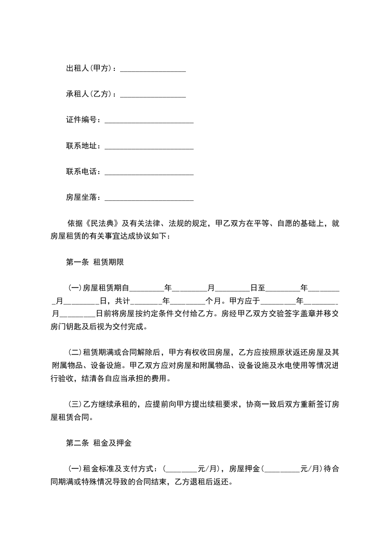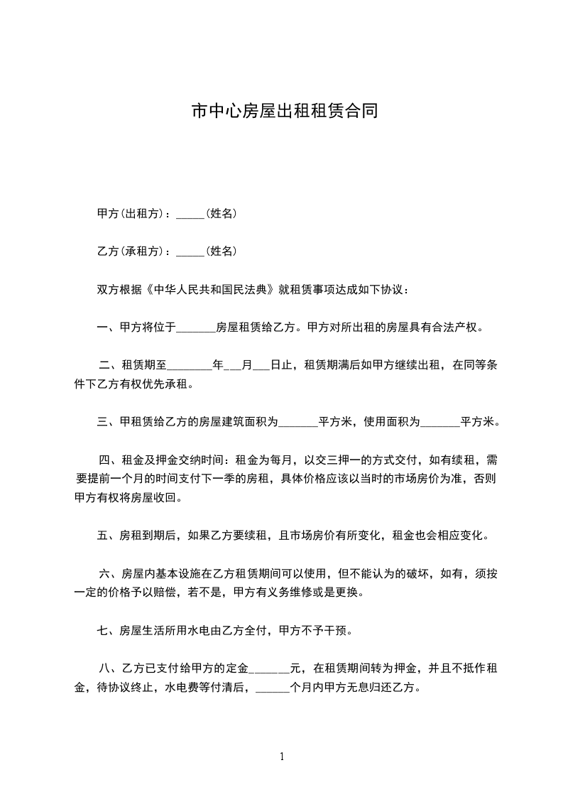 甲方(出租方):_____(姓名) 乙方(承租方):_____(姓名)