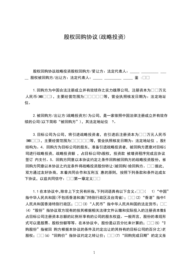 鉴于甲方持有[目标公司名称](以下简称“目标公司”)[X]%的股权,乙方基于对目标公司的战略投资意向,双方经友好协商,就甲方转让其持有的目标公司部分股权给乙方事宜,达成如下战略协议: